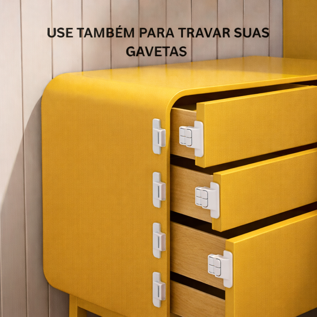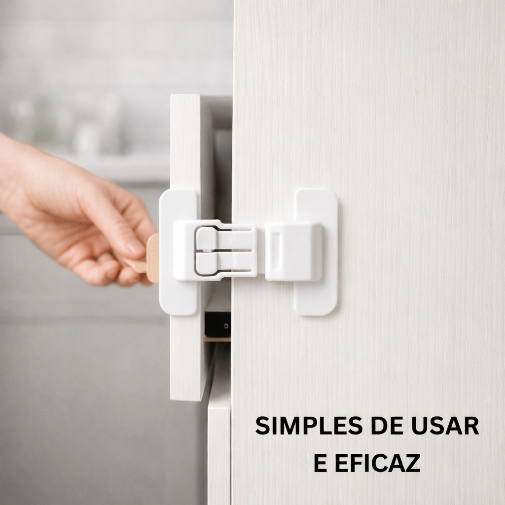 Trava De Segurança Multiuso Para Geladeira E Armário - Bebê Branco