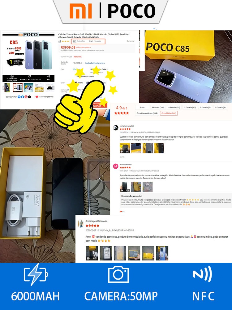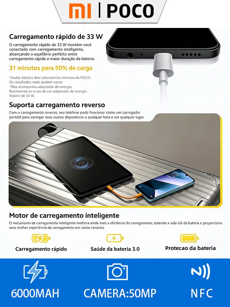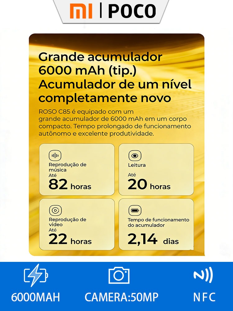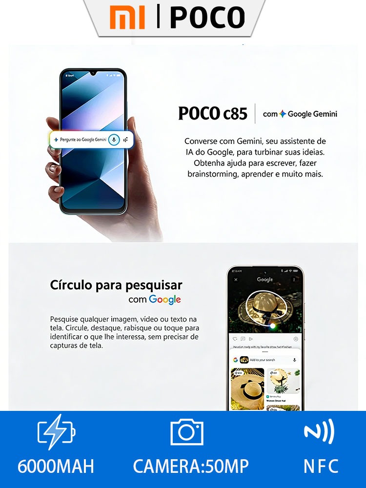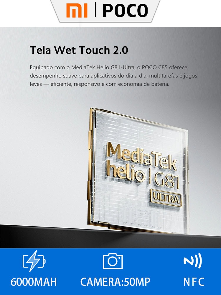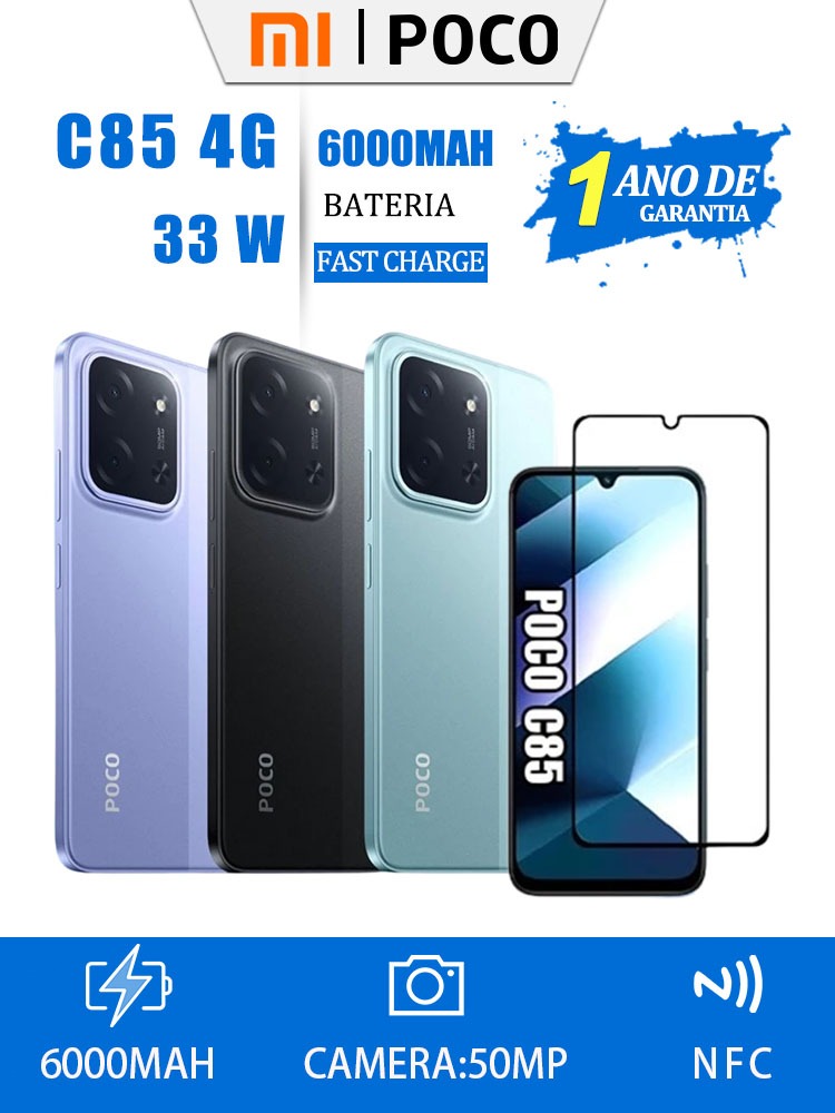 Smartphone Xiaomi POCO C85 4G, NFC Tela LCD 6.9" Original Versão Global Bateria 6000mAh Android 15