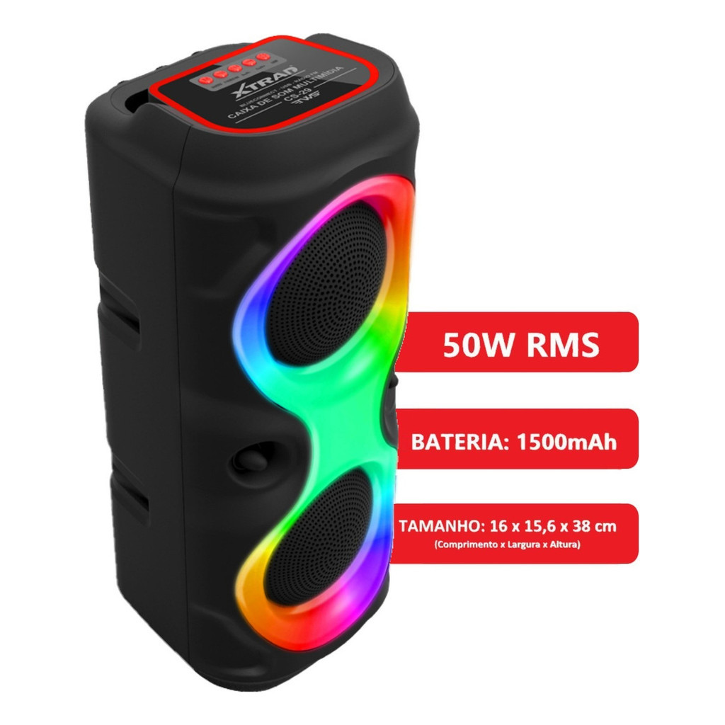 Caixa de som Bluetooth Portátil Com Led RGB Portátil FM USB TWS 30W Para Praia, Festa ou Viagem.