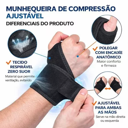 KIT 1/2 Munhequeira Ajustável Compressão Ergonômica Bilateral Conforto Para Pulso