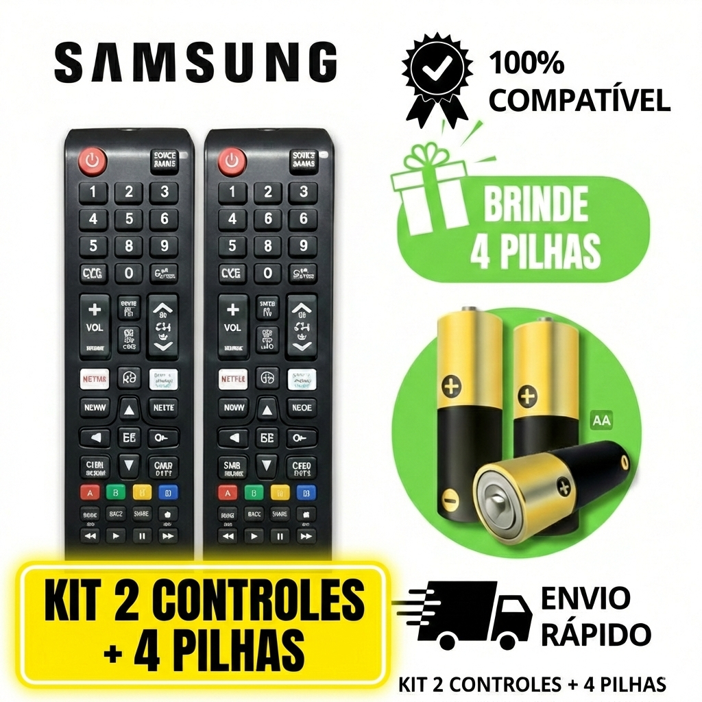 Controle Remoto Samsung Smart TV – Kit Compatível com Todos os Modelos SAMSUNG | Com Pilhas Inclusas