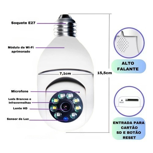 Kit 4 Câmera segurança wi-fi ip sem fio 360 encaixe lampada aplicativo ptz full HD visão noturna