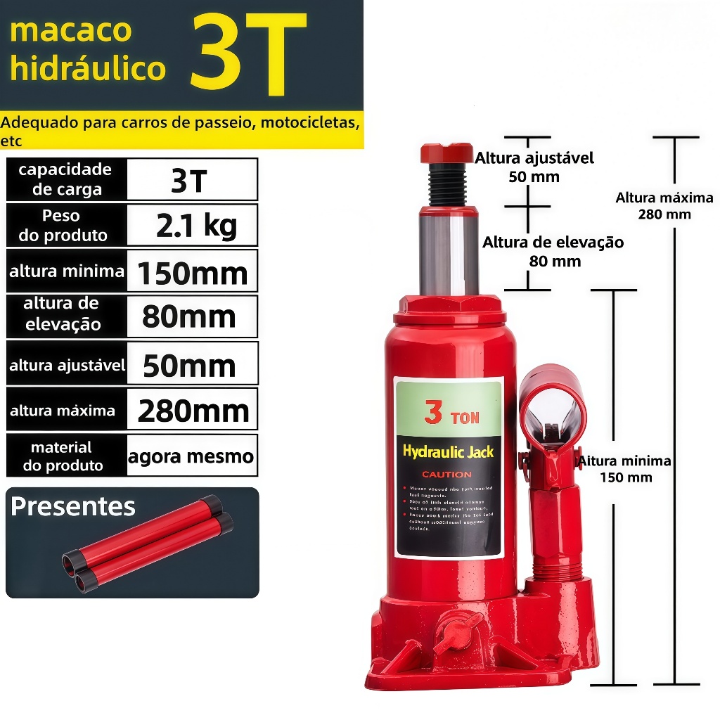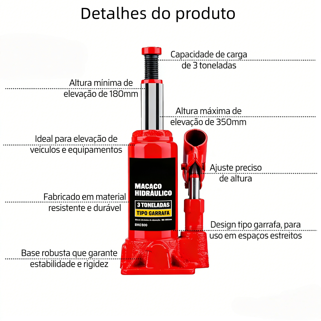 Mini Macaco Hidráulico Garrafa 3 Toneladas