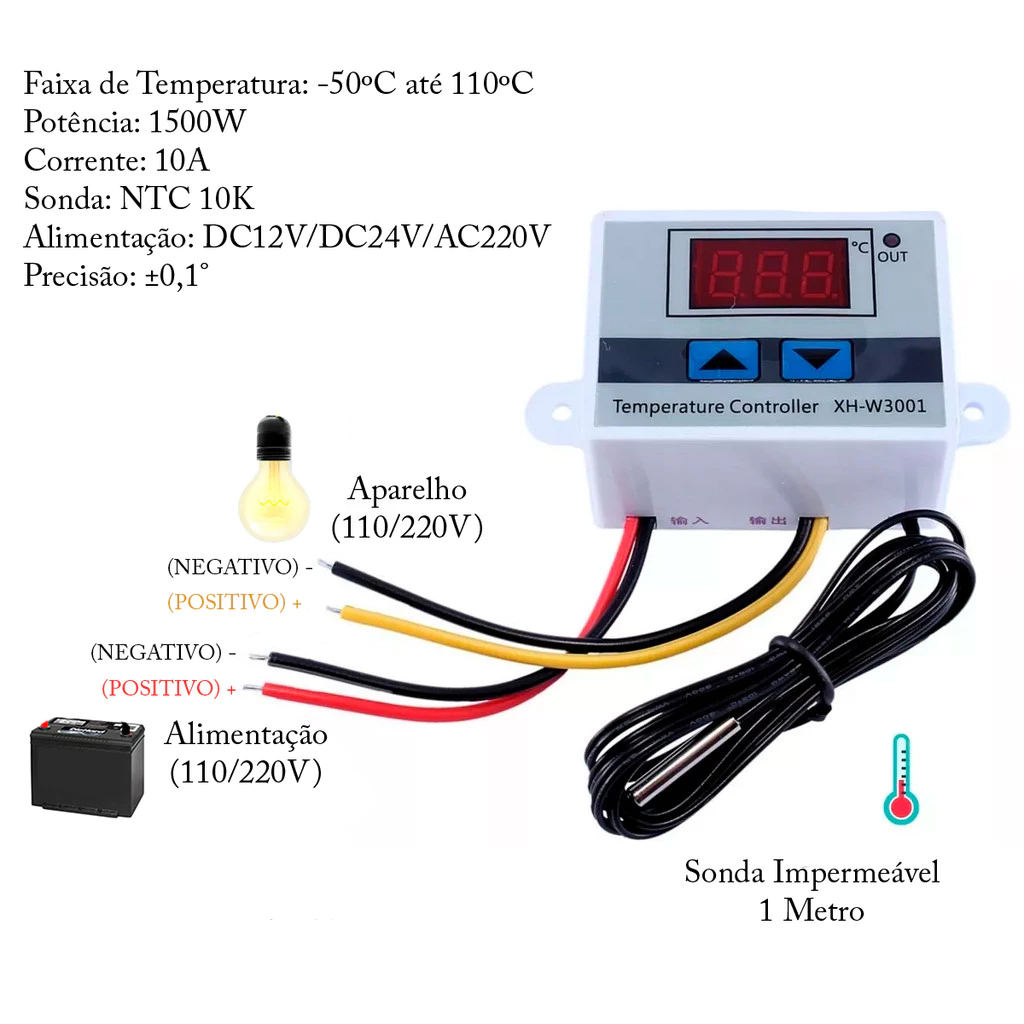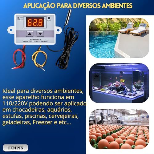 Termostato Digital W3001 110V 220V Controlador para Chocadeira e Aquário