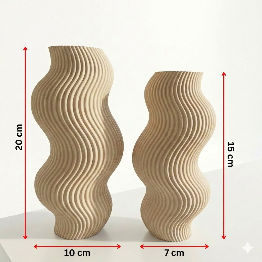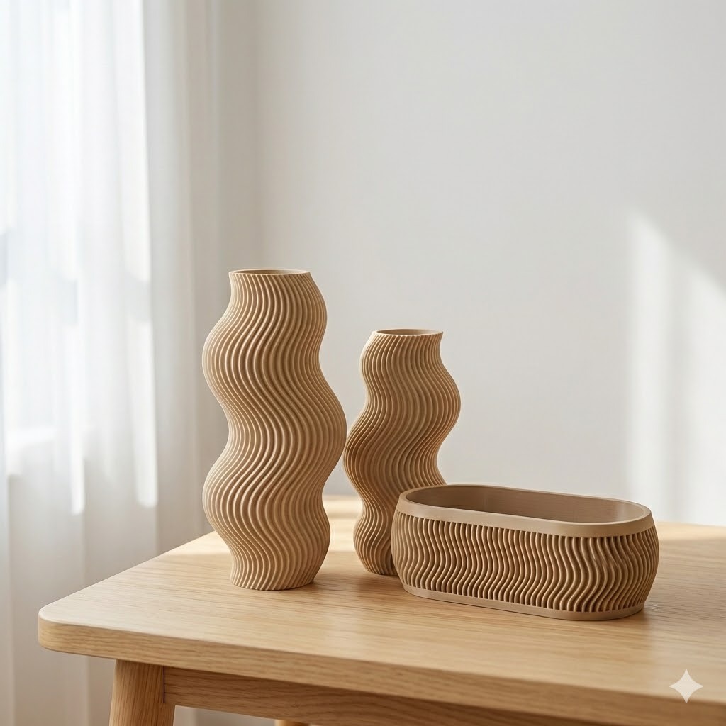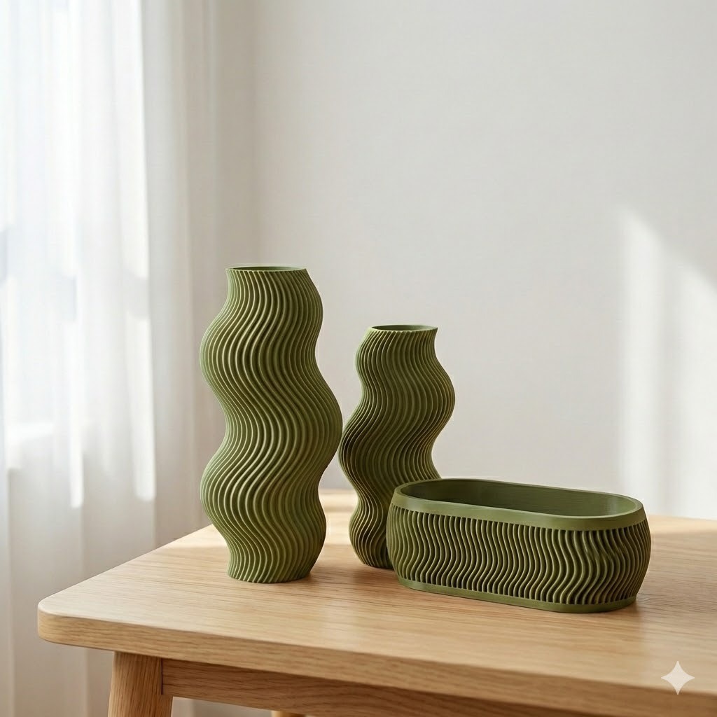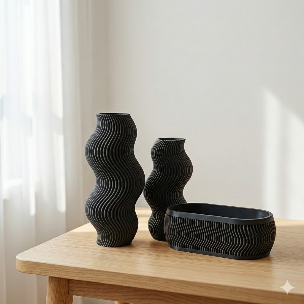 Kit Decorativo Ondulado com 2 Vasos + Organizador – Banheiro e Penteadeira
