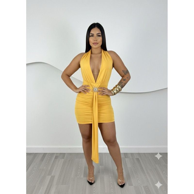 Vestido curto com decote fivela chic elegante