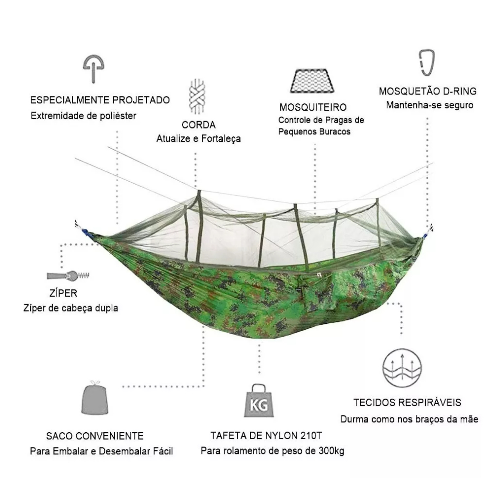 Rede De Dormir Descanso Com Mosquiteiro Camping 300kg Acampamento ao ar livre pesca ao ar livre