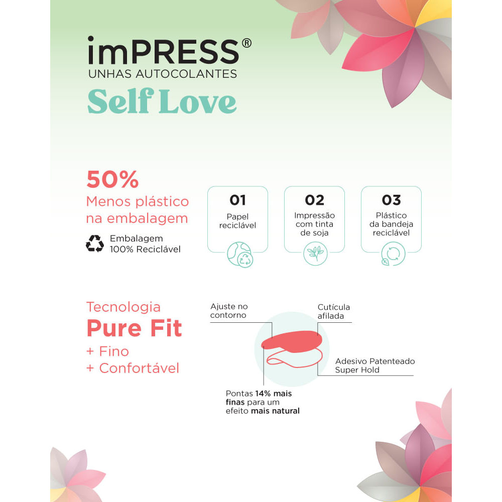 Unha Postiça Autocolante imPress Self Love média 220V - Kiss New York