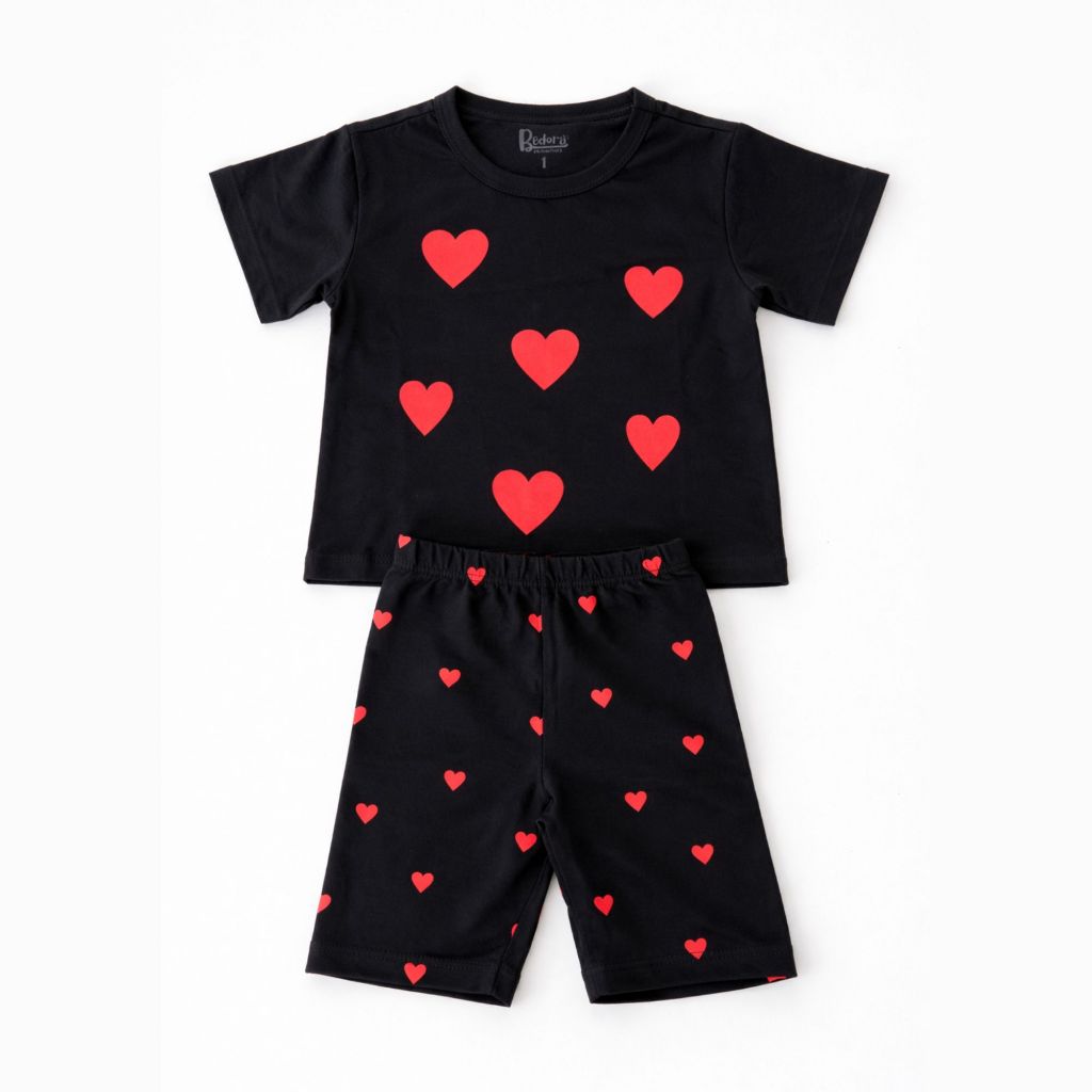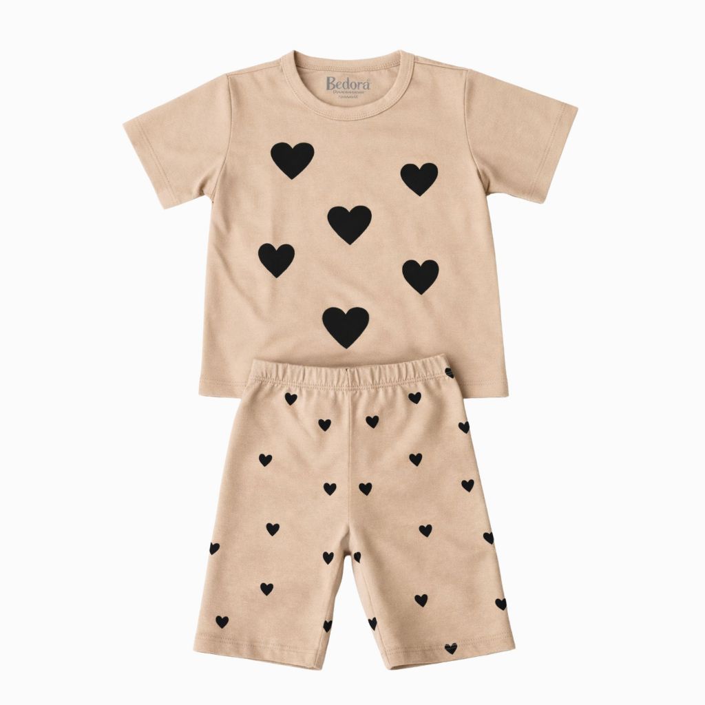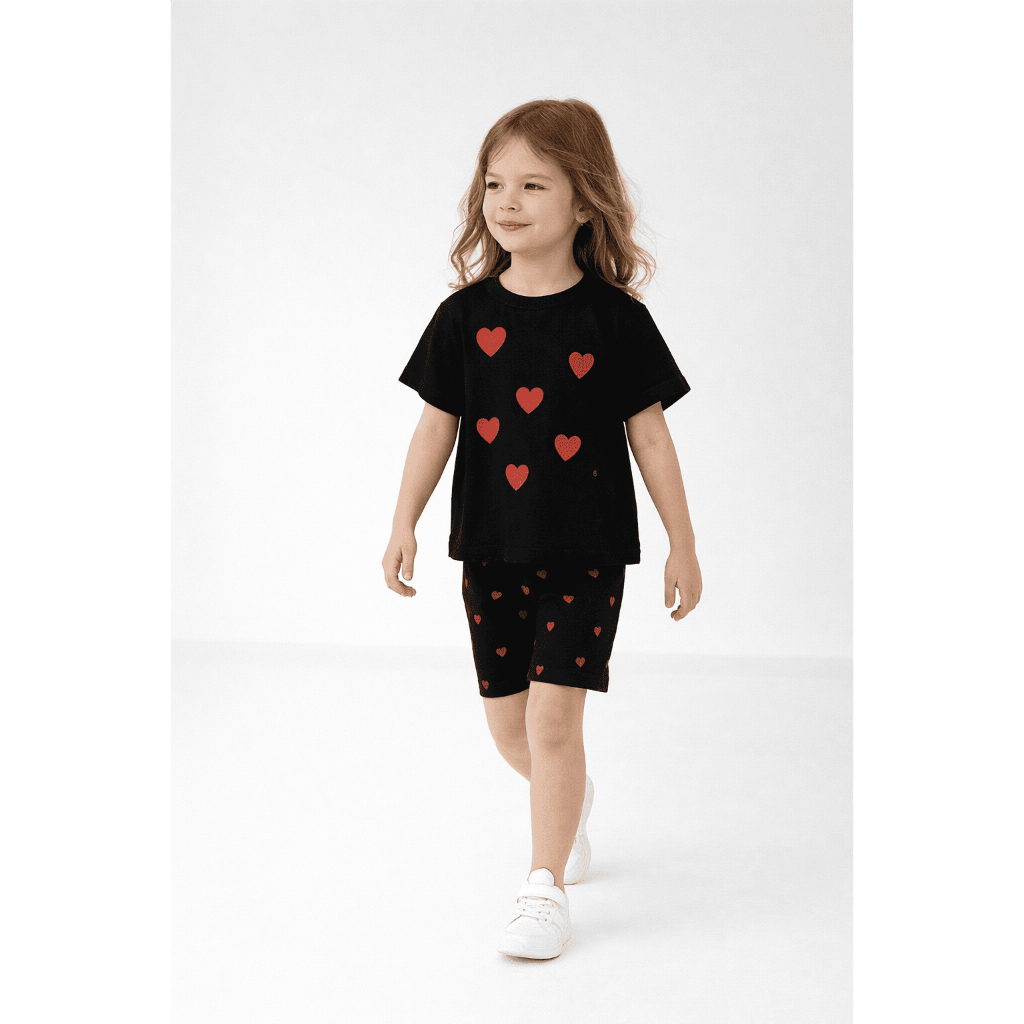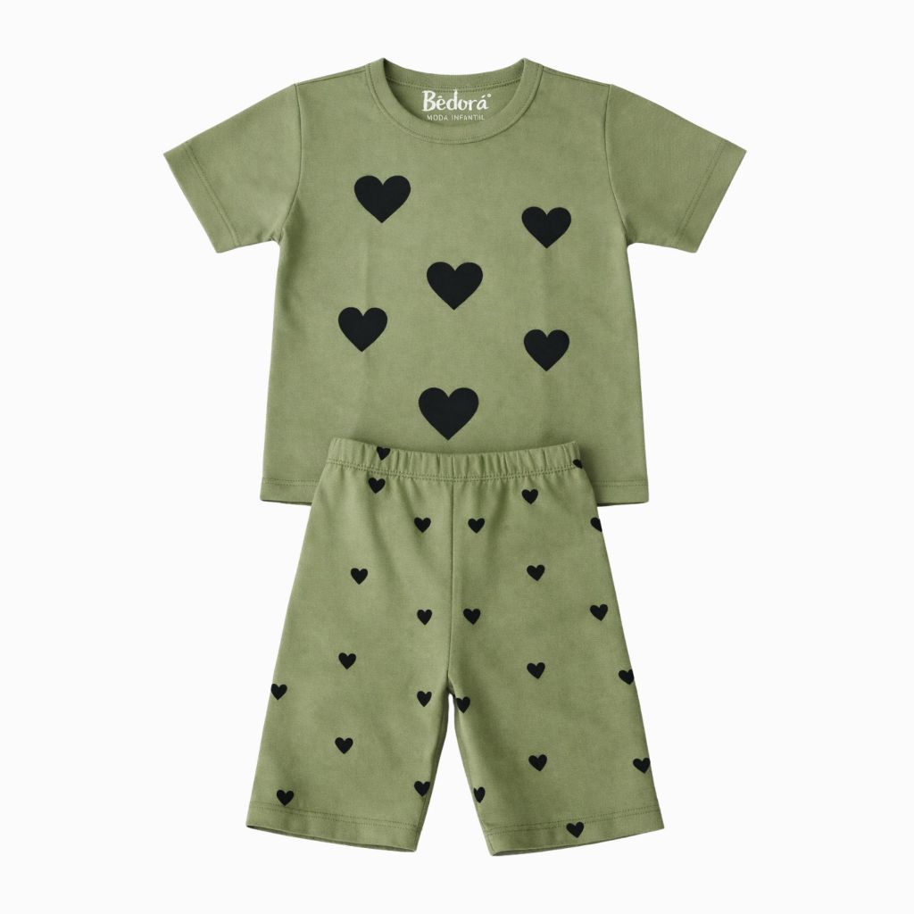 Conjunto Infantil Menina Verão Coração Blusa Short Ciclista Algodão G a 08 Anos