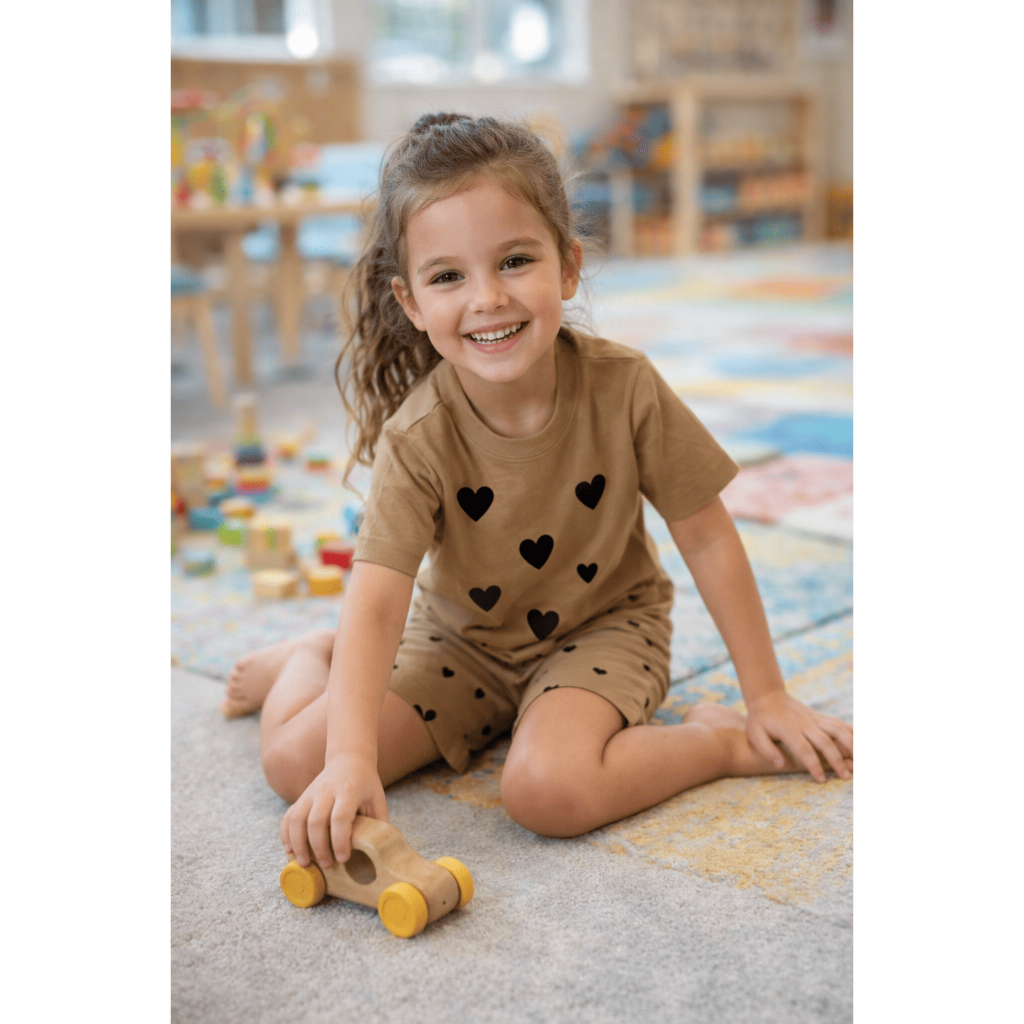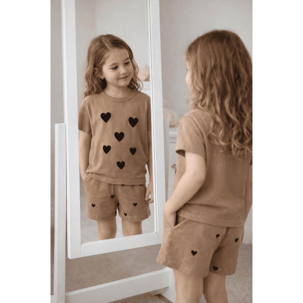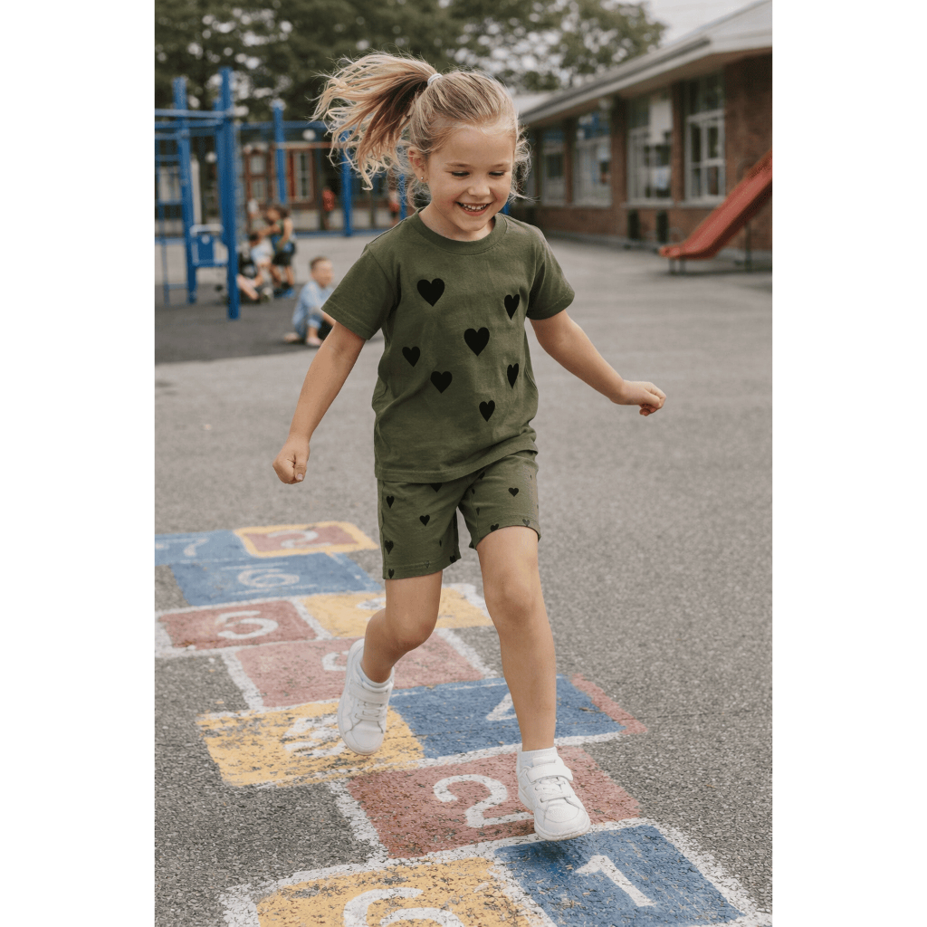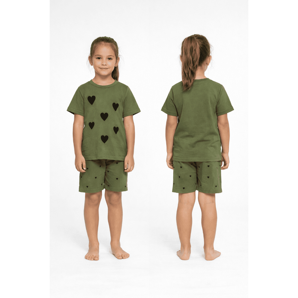 Conjunto Infantil Menina Verão Coração Blusa Short Ciclista Algodão G a 08 Anos