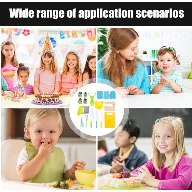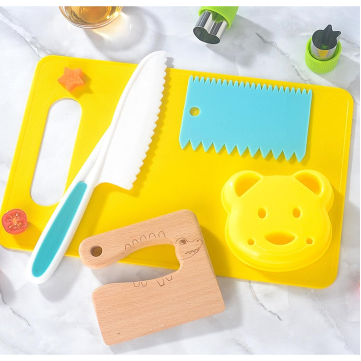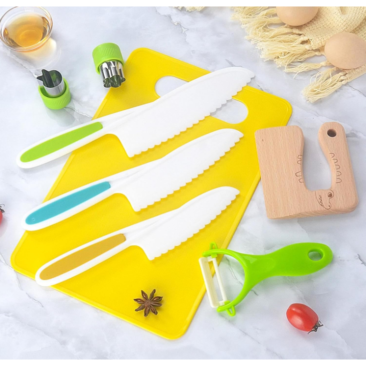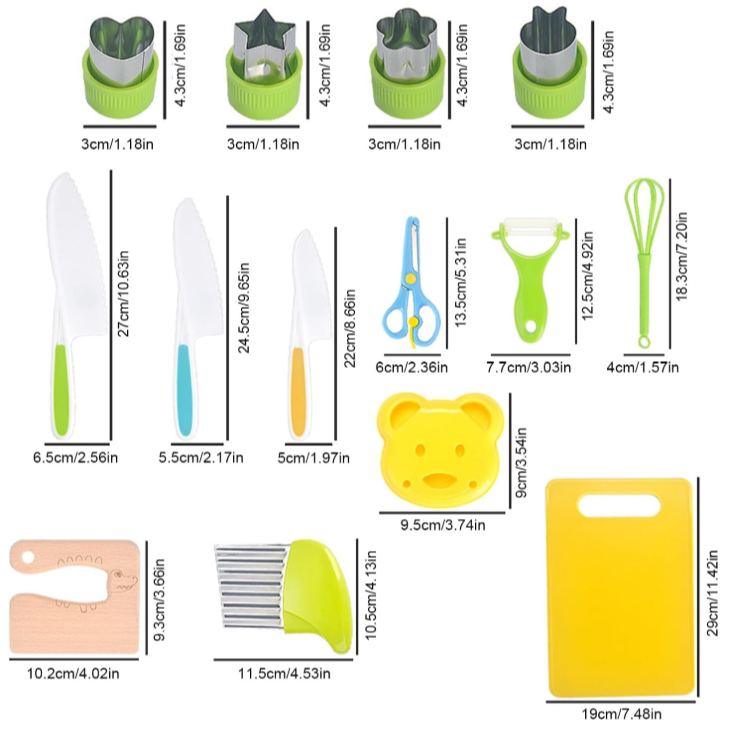 Kit 17 Peças Montessori Cozinha Infantil Educativa Facas Seguras Didático Presente Menina Menino +3 Anos