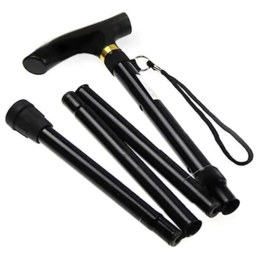 Bengala Dobrável Retrátil alta qualidade Com Regulagem E Trilha Ajustável Em Alumínio preto