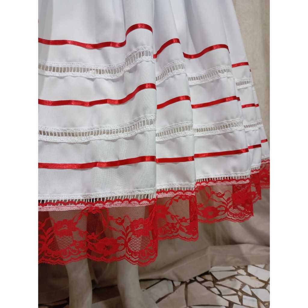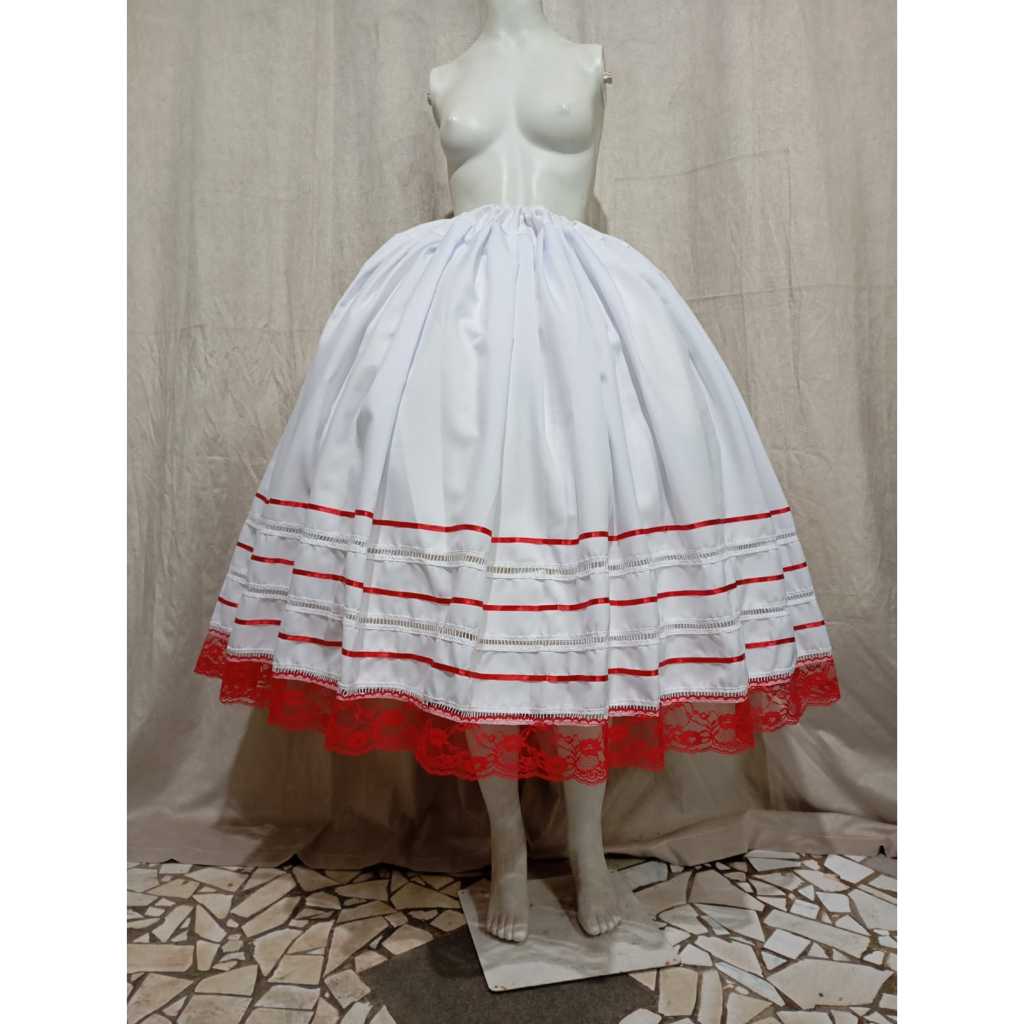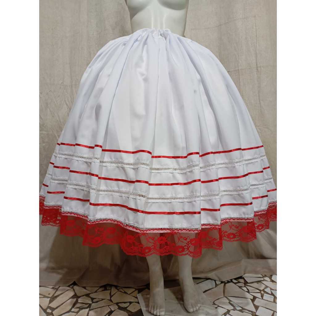 Saia Umbanda e Candomblé - Branca e detalhes de outras cores - Saia de 3,5 m por 0,90