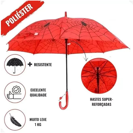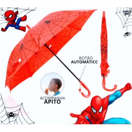 Guarda Chuva Infantil Homem-Aranha Automático Reforçado com Apito Sombrinha Criança Anti Vento