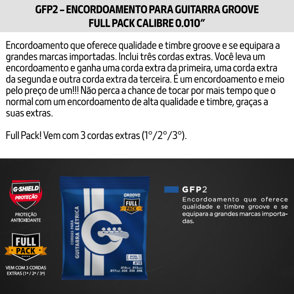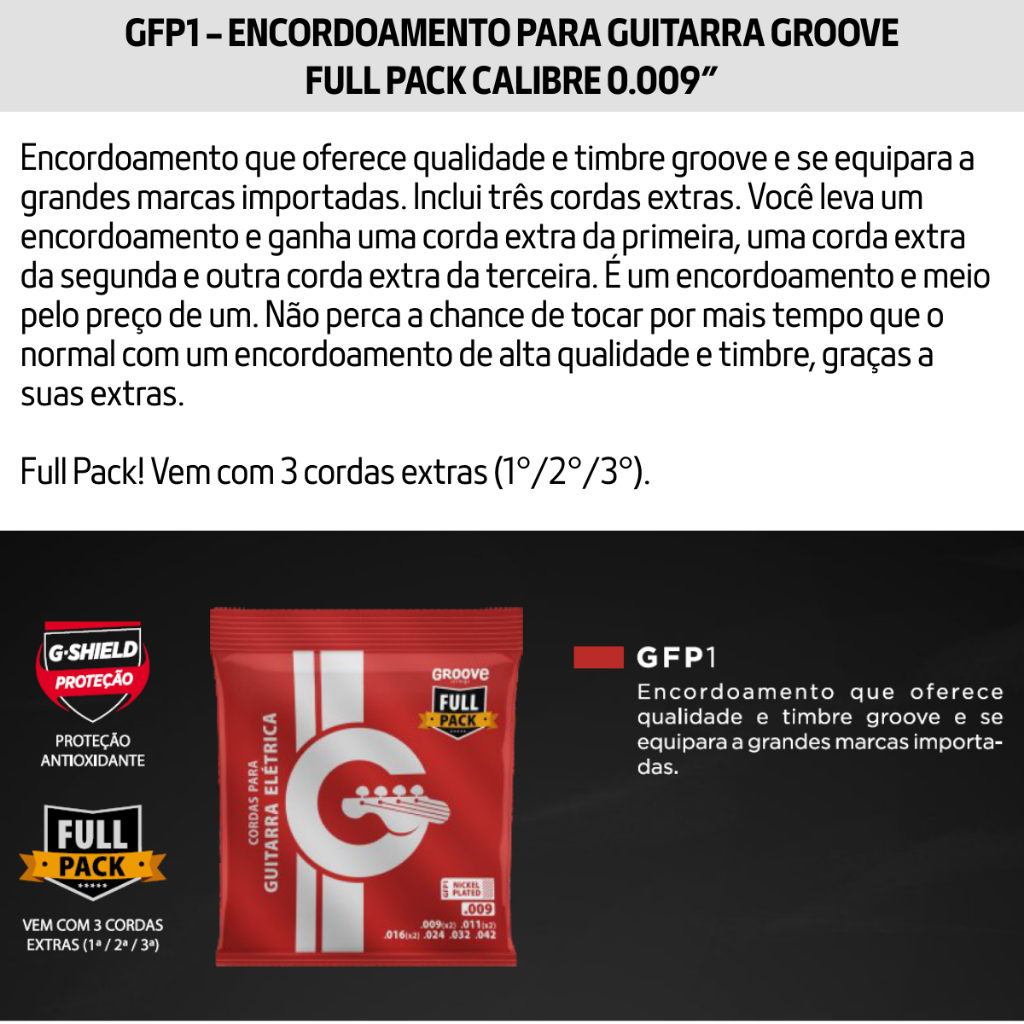 Encordoamento Jogo de Corda Groove by Solez Guitarra 0.9 0.10 GFP1 GFP2 Mi, Si e Sol Extra