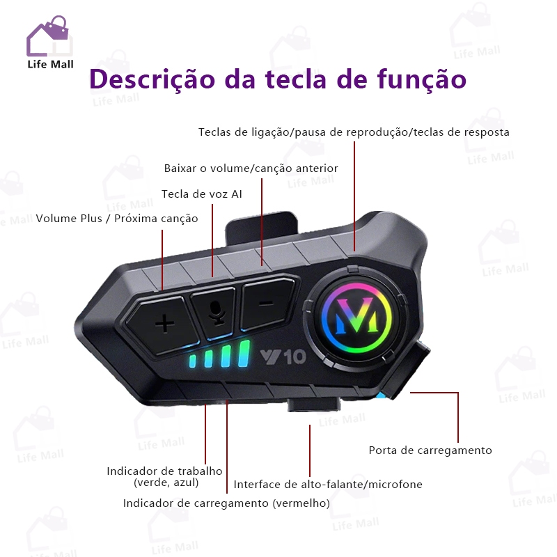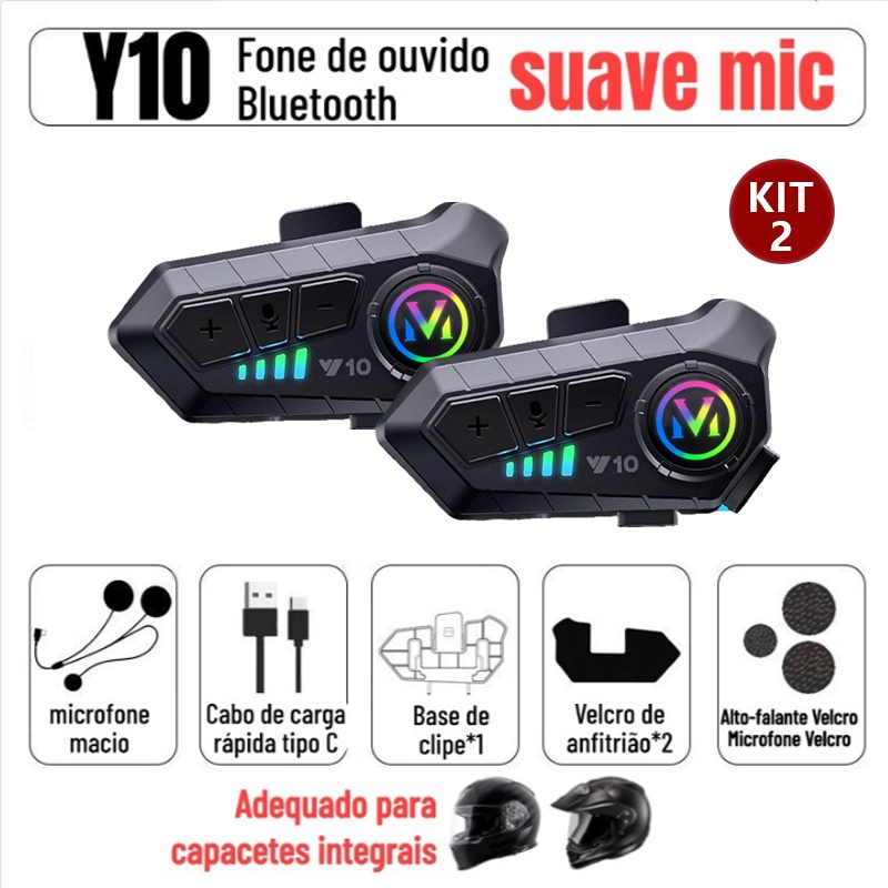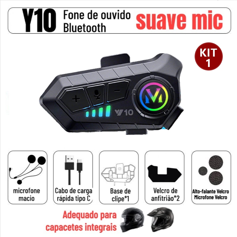 Fone Capacete Y10 Bluetooth 5.3 - Sem Fio, À Prova d'Água, Mãos Livres para Motocicleta, Chamadas Claras