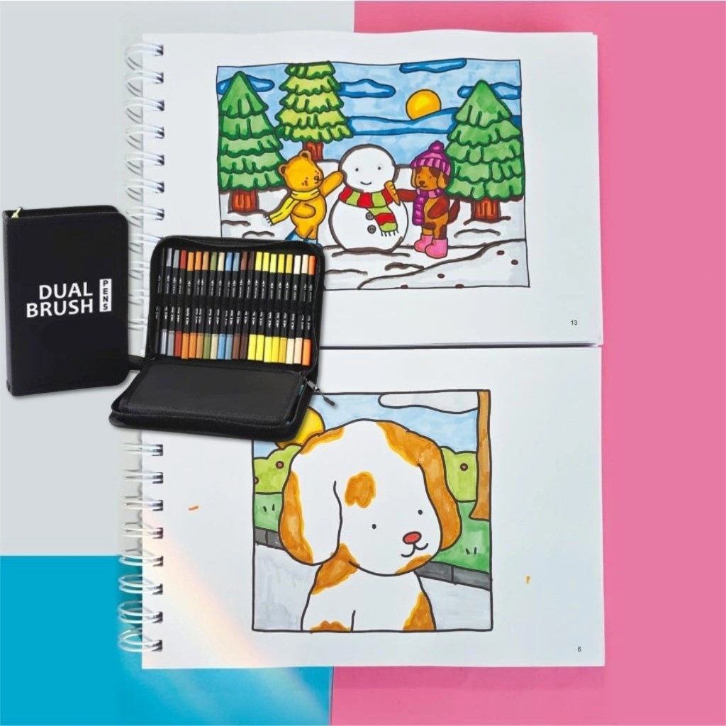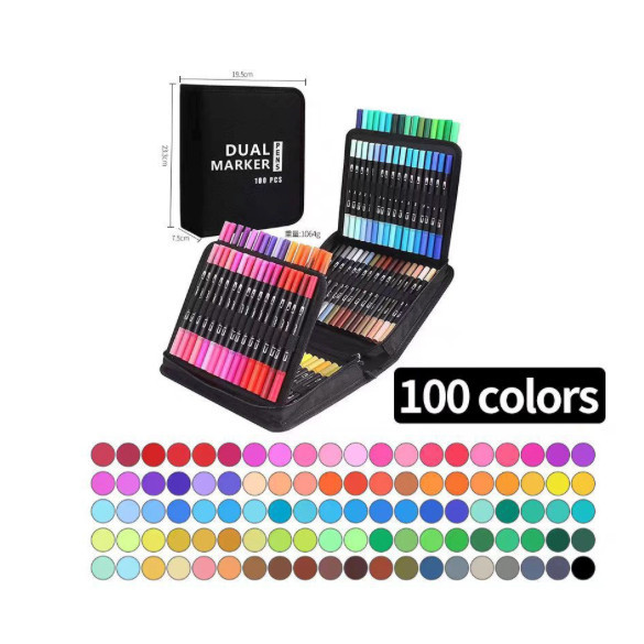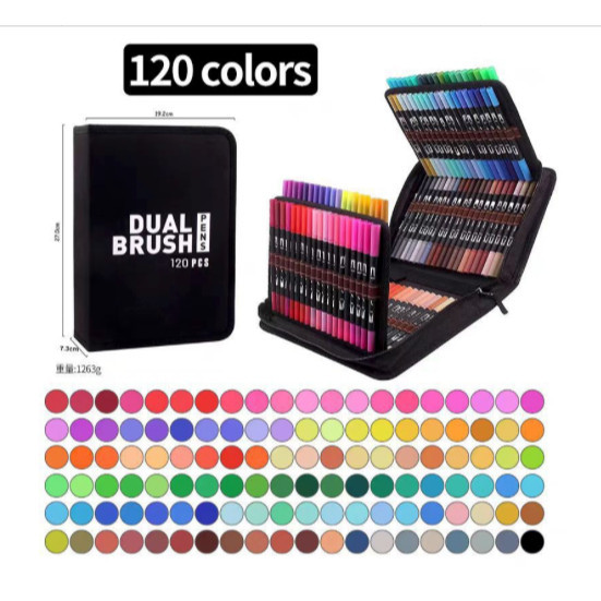 Kit 60/120 Cores 2 Em 1 Pincel Caneta+Livro de colorir Para Letras E Dupla De Ponta Fina Marcador De Desenho Colorir