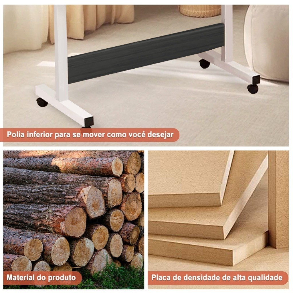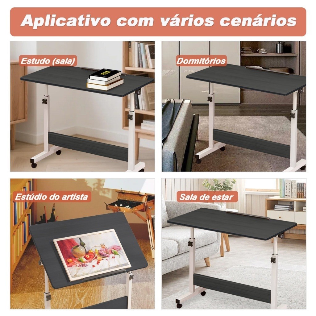 Mesa ajustável para computador com uma prateleira Mesa Escrivaninha Cama Notebook Portatil - Base de Ferro e MDF