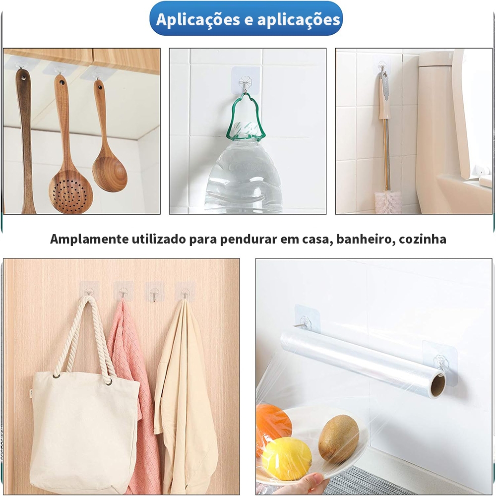 KIT 2/4/6/8/10/15 Gancho Adesivo Parede Multifuncional Transparente Autocolante Metálico Premium