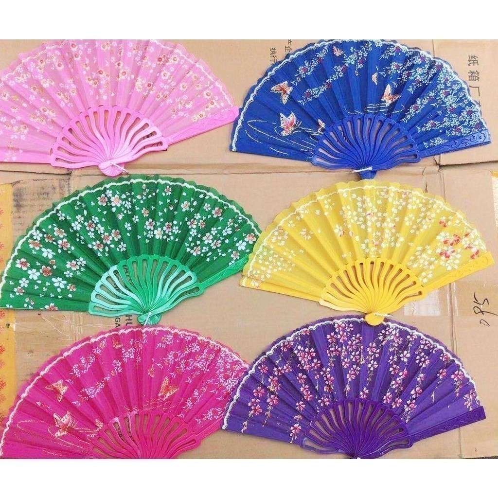 GUIANA KIT 12PCS Leque de tecido Colorido estampado plastico Com Glitter/SEM Glitter
