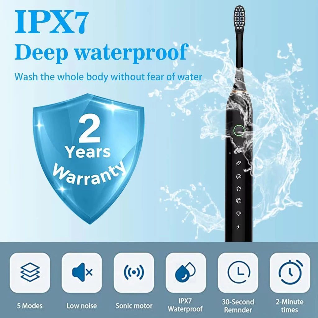 Escova de dentes elétrica recarregável Sonic IPX7 Com Cabeça Substituivel inteligente Ultrassônico