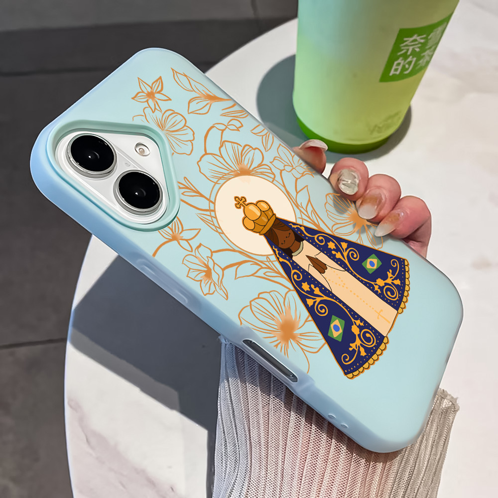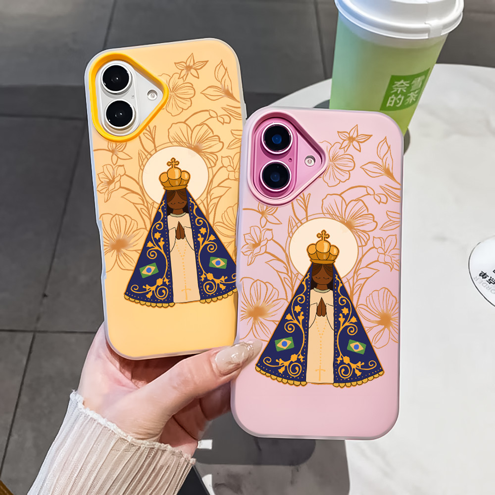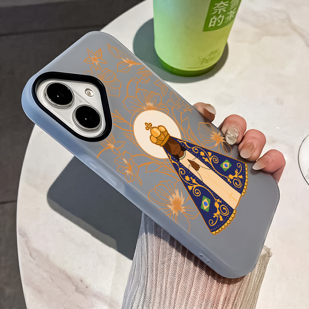 Nossa Senhora 2 Em 1 Capa Capinha Para iPhone 17 Ar 16 15 14 Plus 13 12 11 Pro Max 16e Fosco Silicone Anti-Impacto