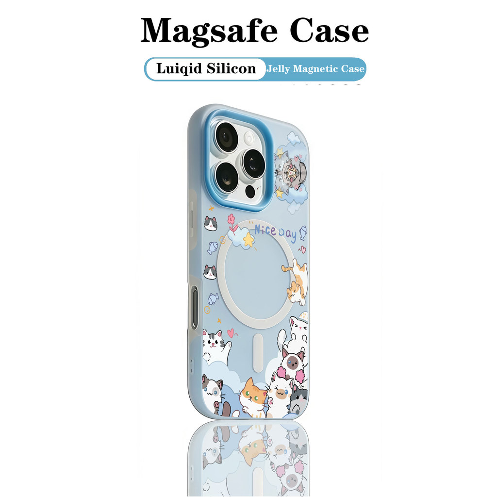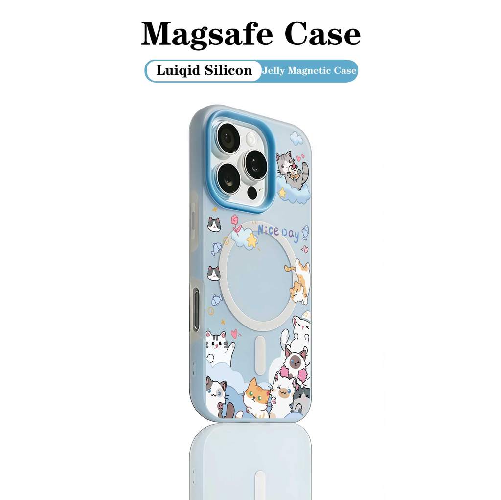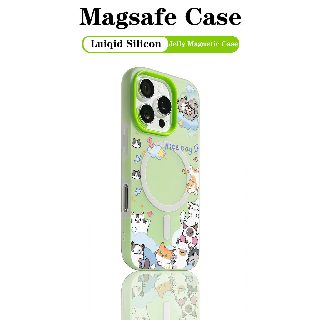 Bonito Animal Gato Colorblock Geléia MagSafe Caso De Telefone iPhone 11 12 13 14 15 16 MAX PLUS Na Moda Capa De Silicone
