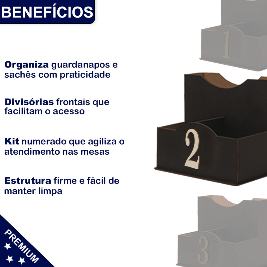 10 Porta Guardanapos Numerados MDF Preto Identificador Mesa Restaurante Bar Buffet Lanchonete Kit Organização Top