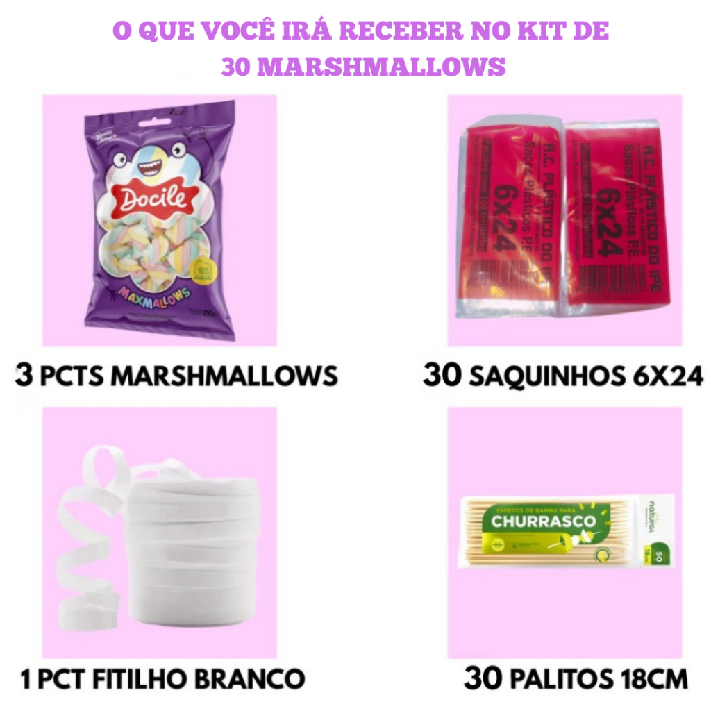 Marshmallows No Palito Doce Lembrancinha Festa Infantil - Rende Até 30 Unidades