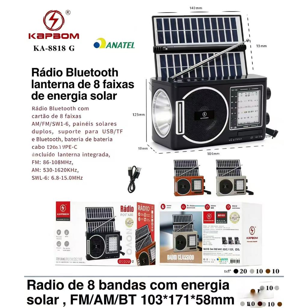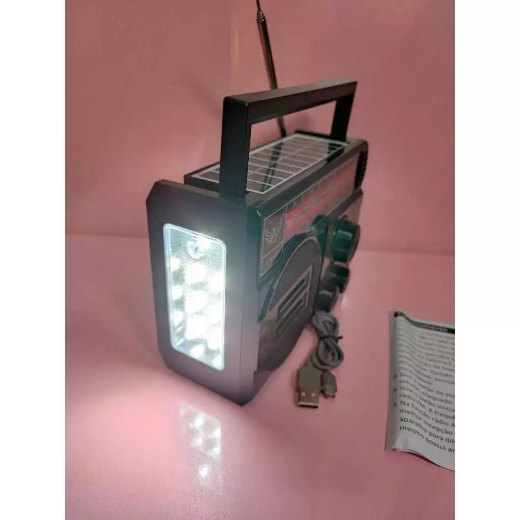 Rádio Portátil Retro AM FM com Energia Solar e Bluetooth - Rádio Recarregável com Entrada USB e Cartão SD para Casa, Via