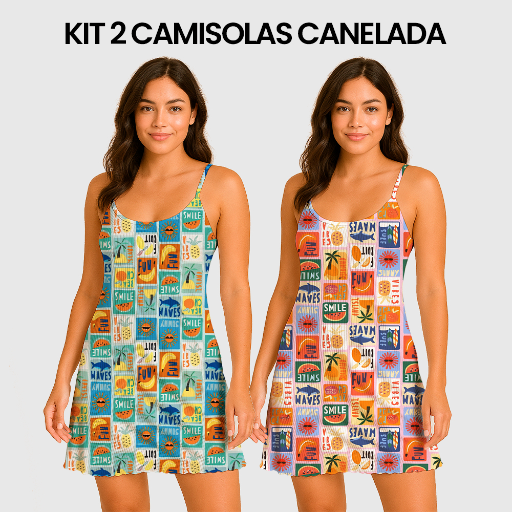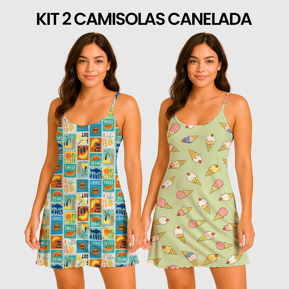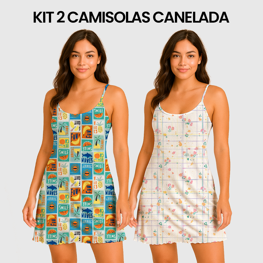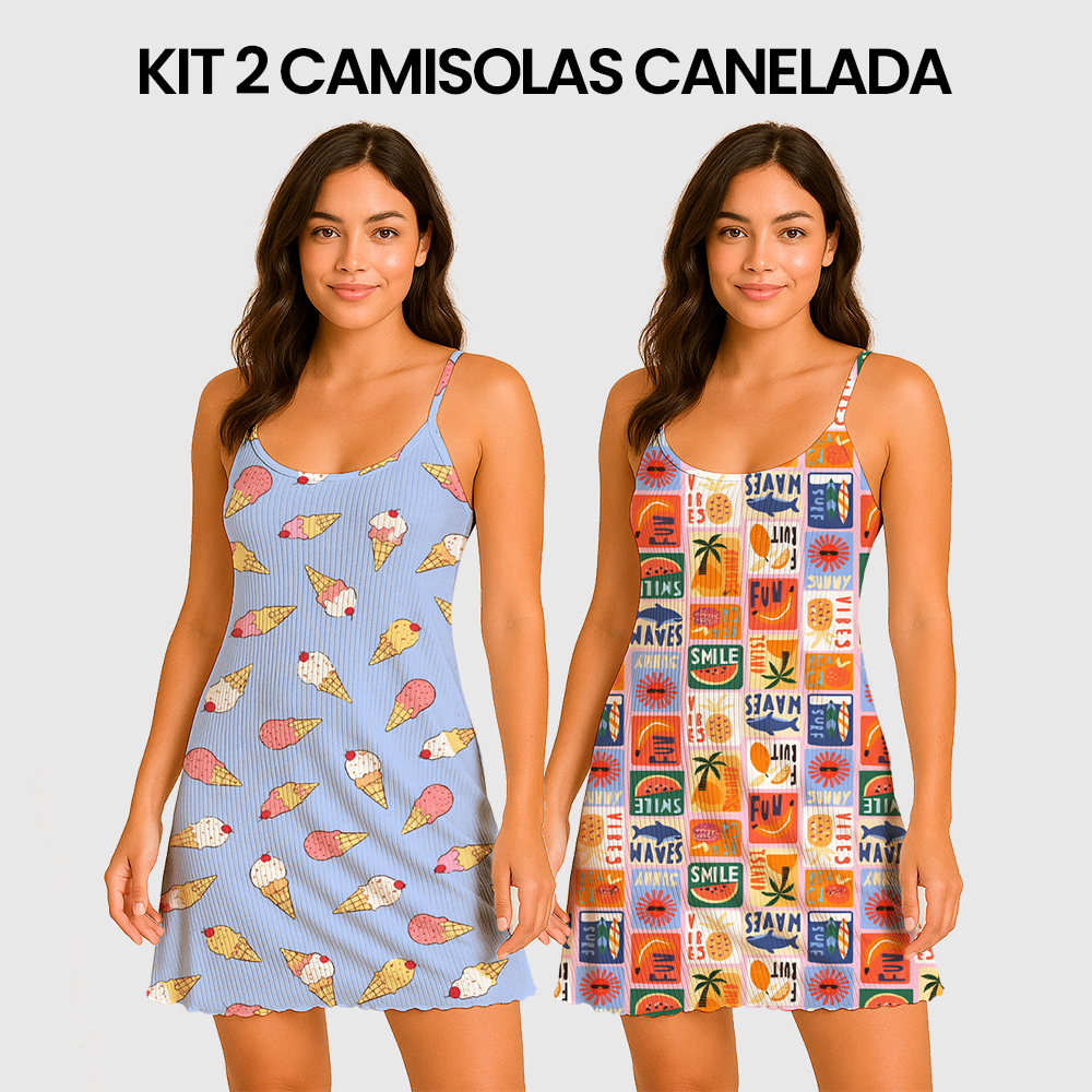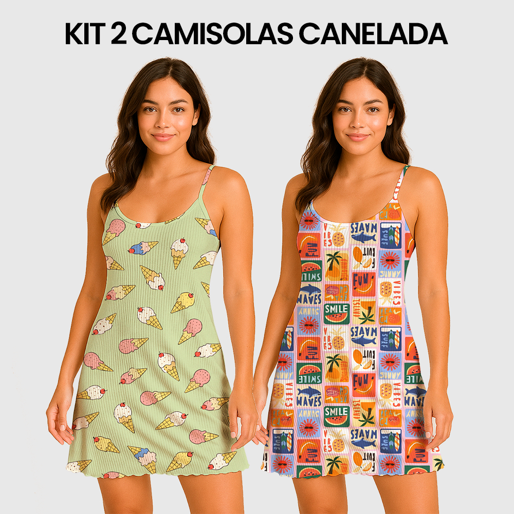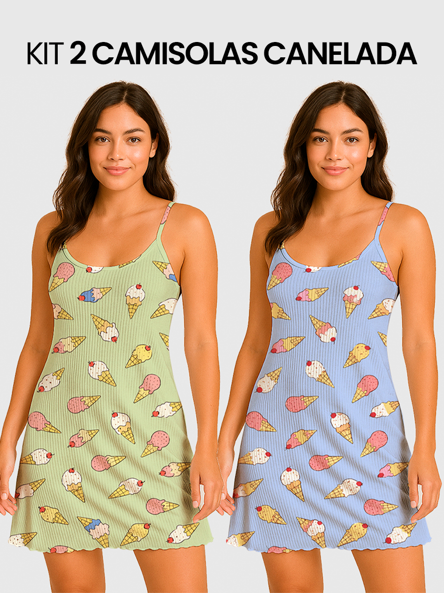 KIT 2 Camisolas Pijama Feminino Estampada Tecido em Suede Canelado - P, M, G, GG