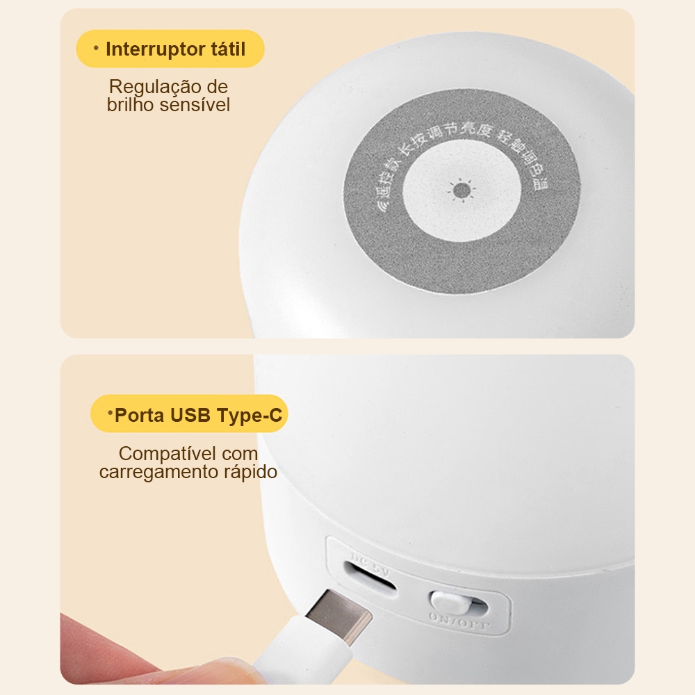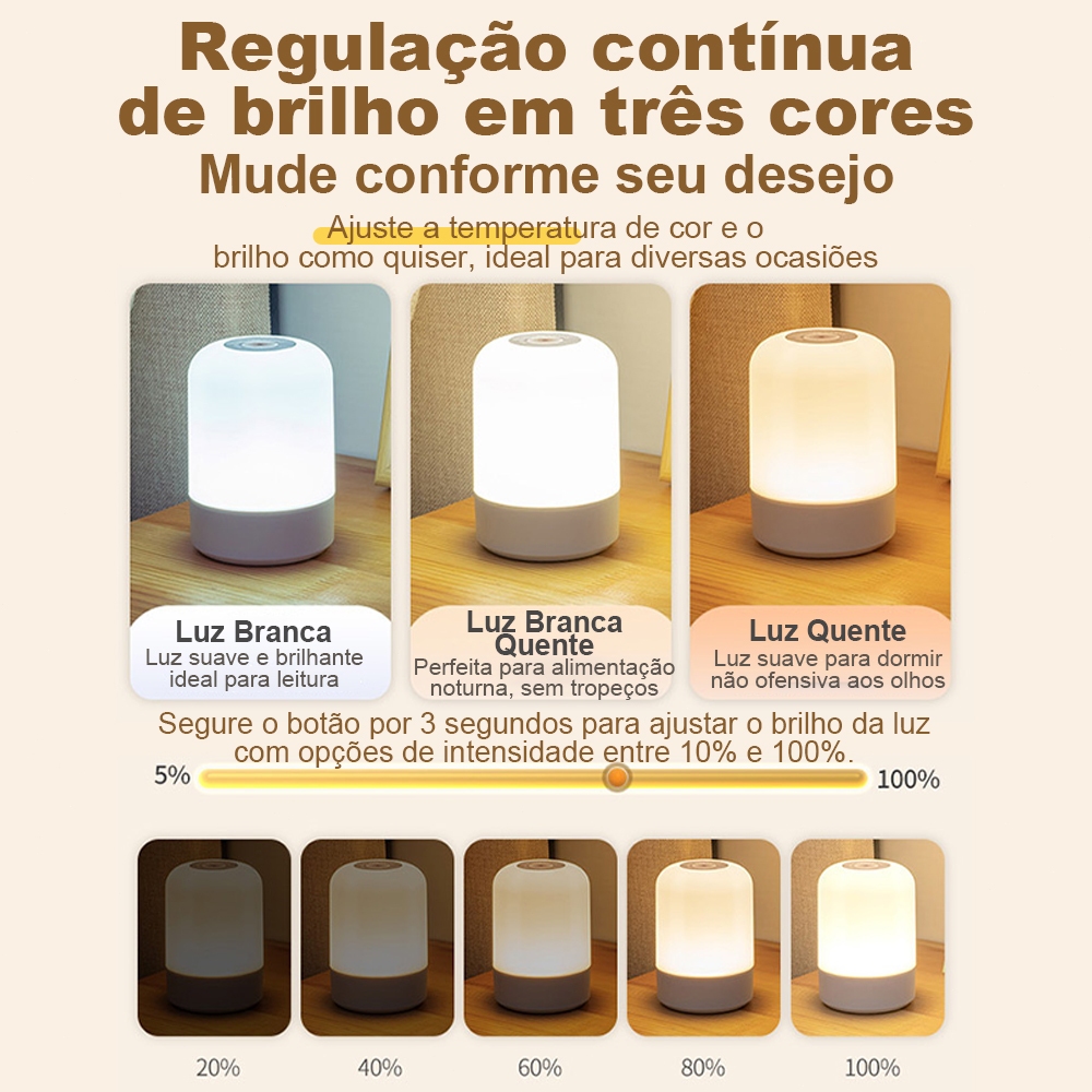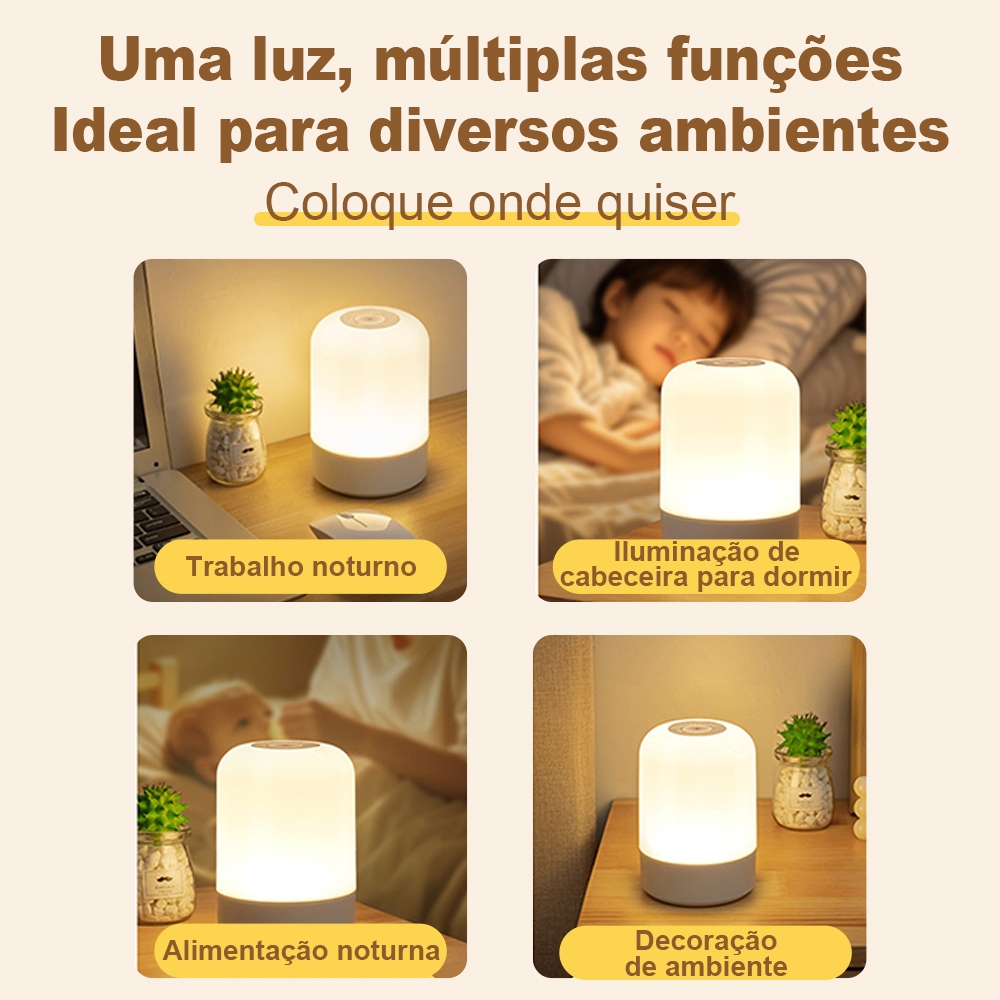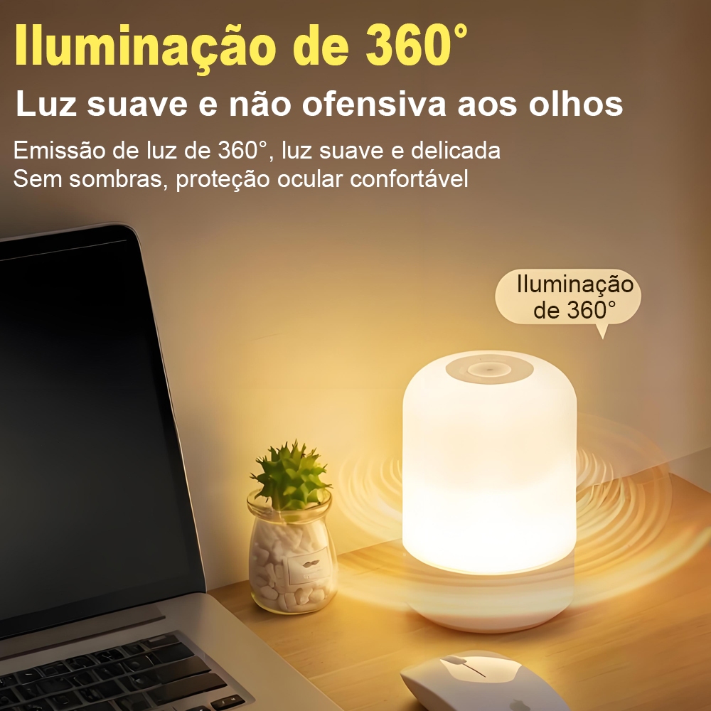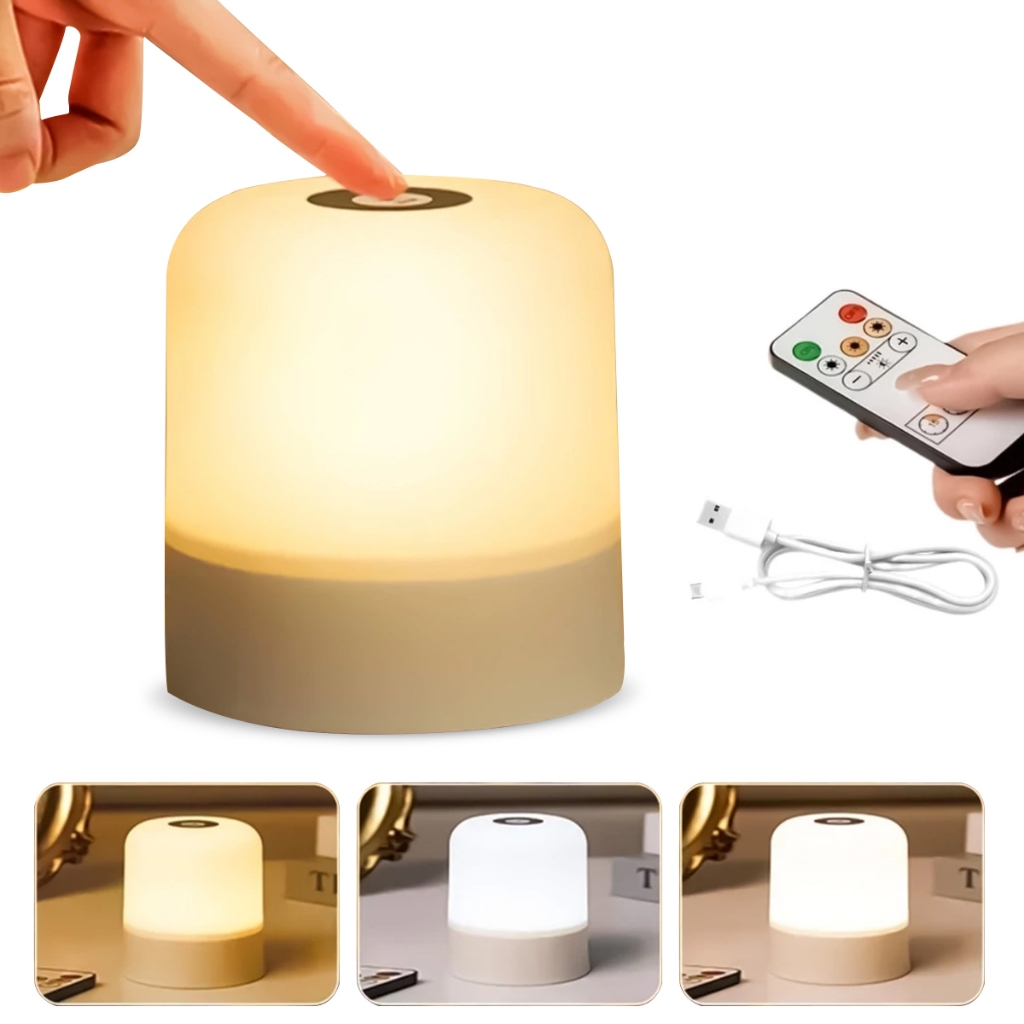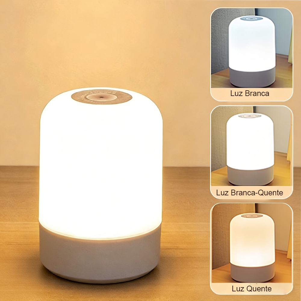 Abajur de Mesa Recarregável com Toque | 3 Modos de Luz e Controle Remoto para Quarto