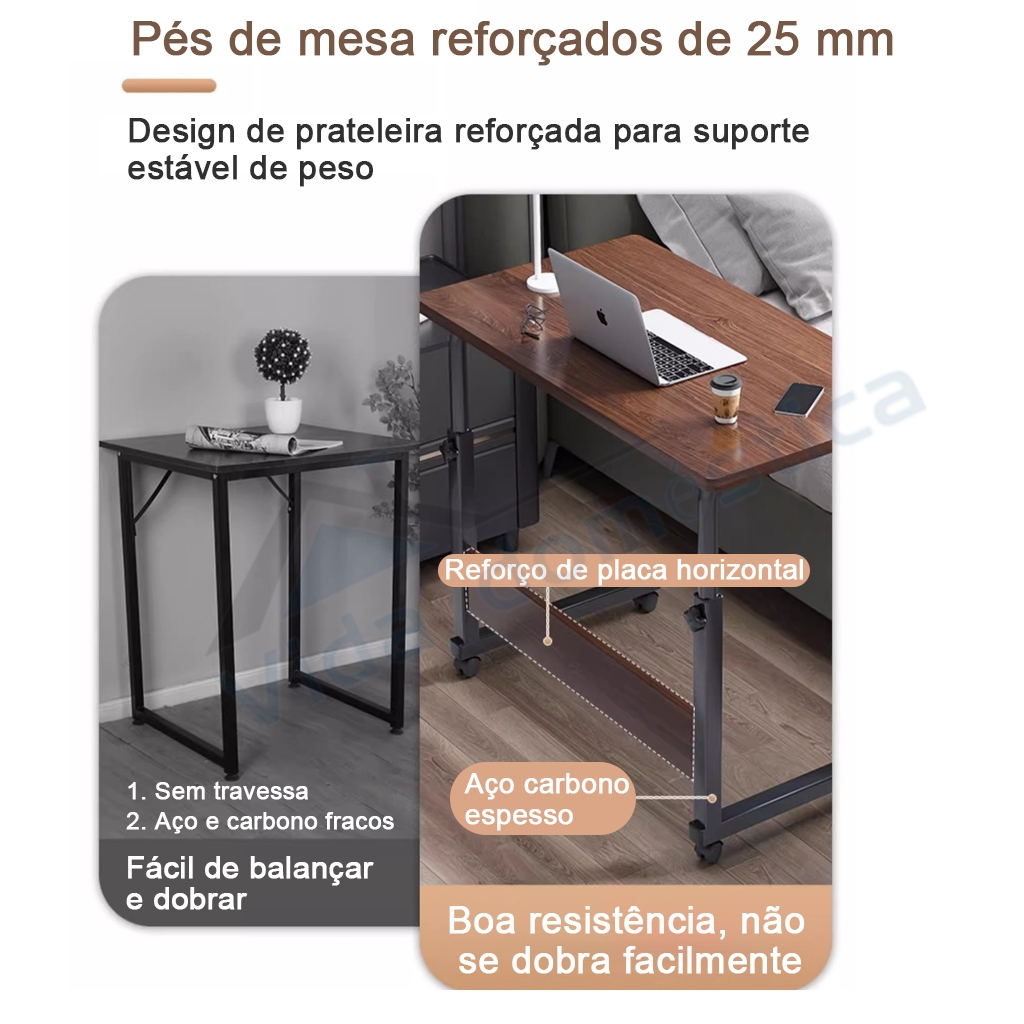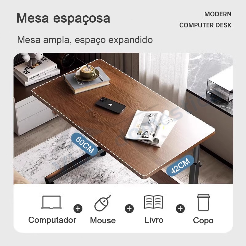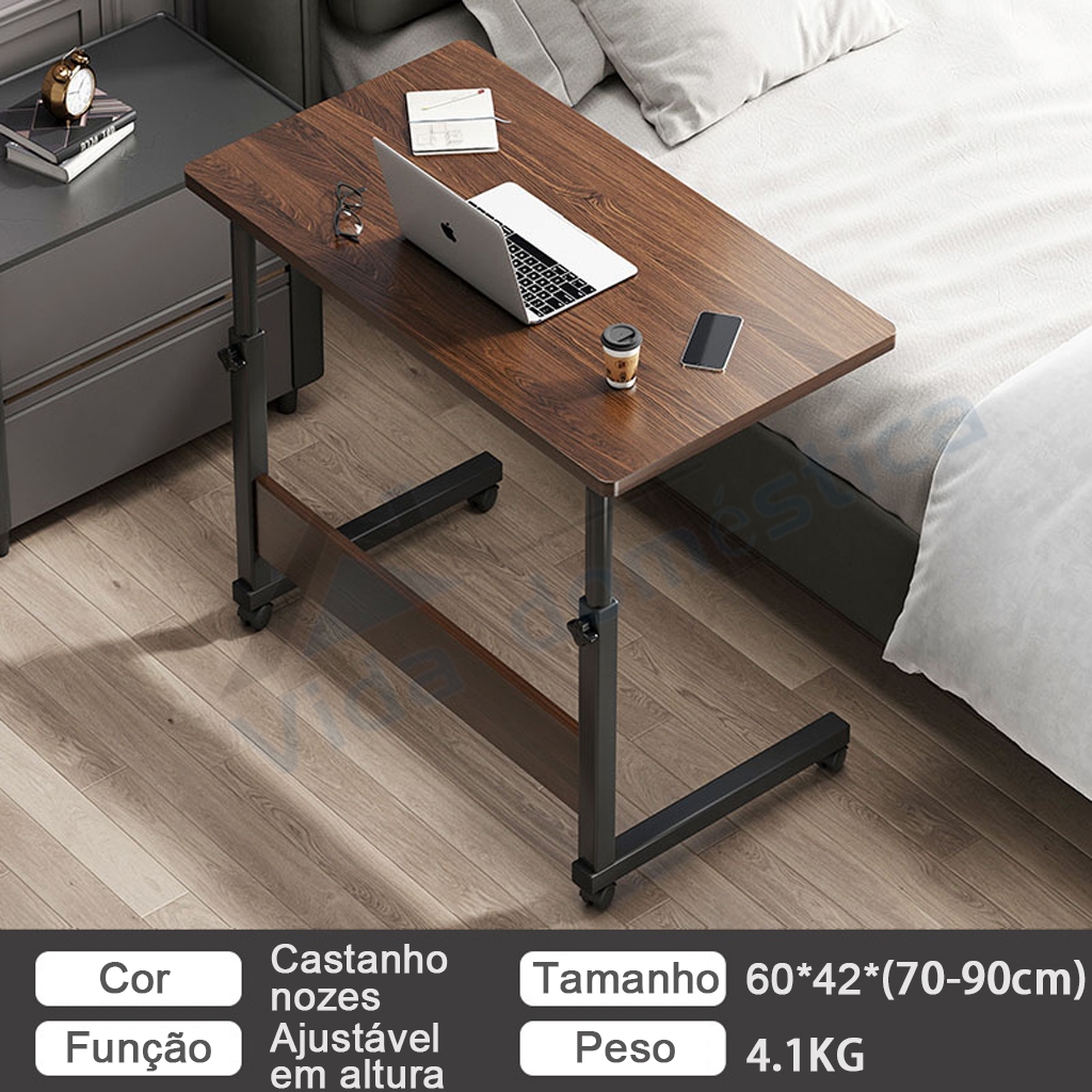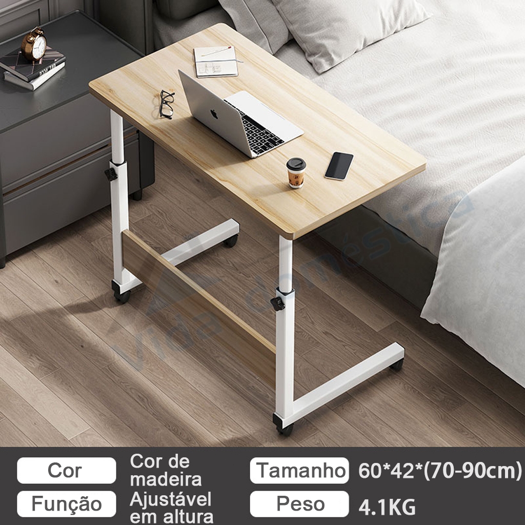 Mesa Mutiuso Mesinha Notebook Com Altura Regulavel e Rodinhas Tablet Cama Sofá Ajustavel Cor da madeira para estudantes