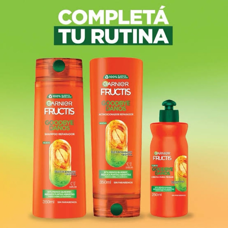 Garnier Fructis Shampoo e Condicionador 350ml e Creme para pentear 250ml