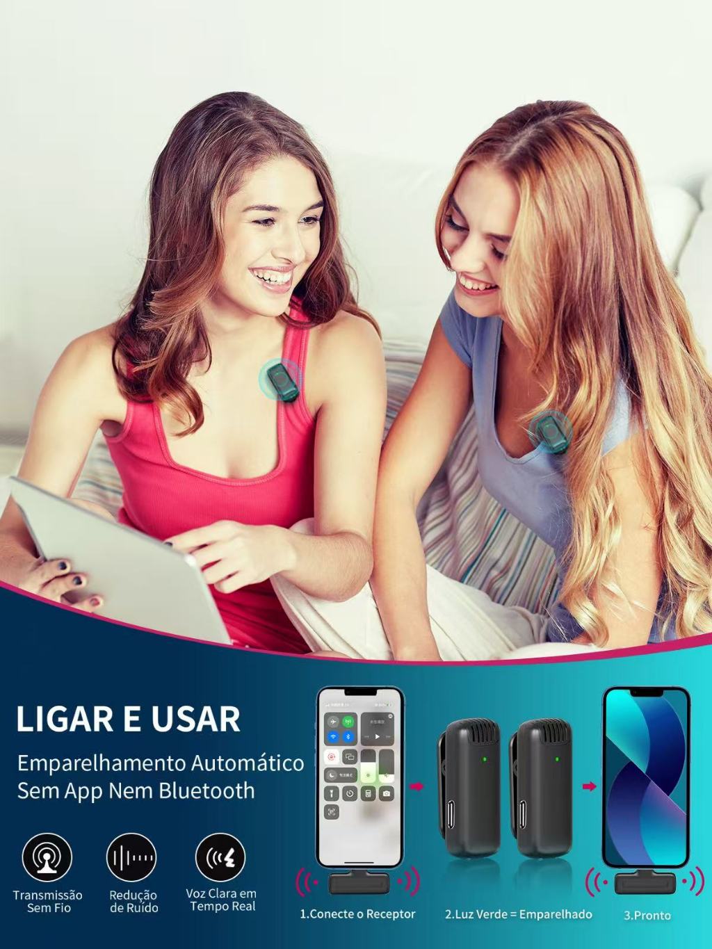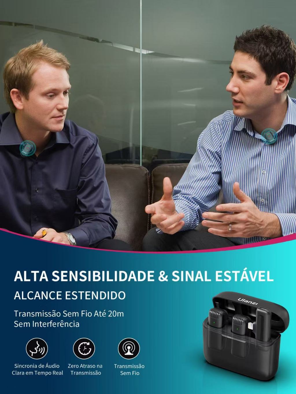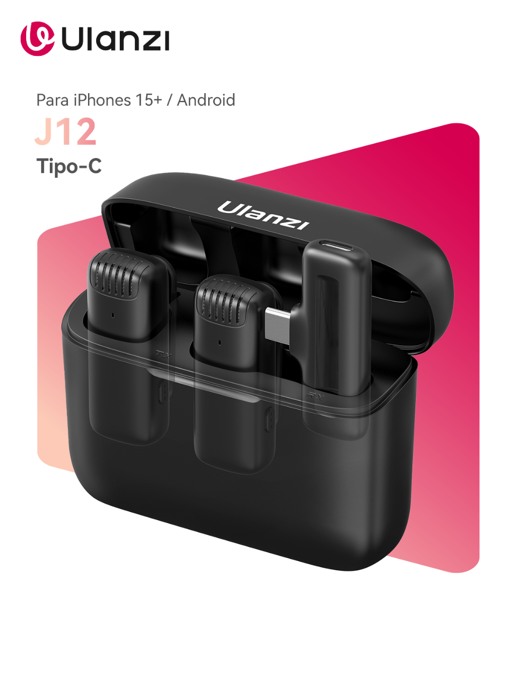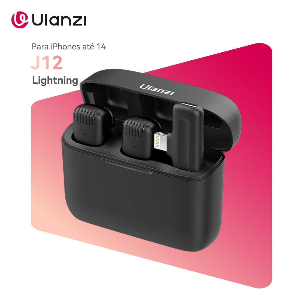 ULANZI J12 Microfone De Lapela Wireless Type-C/Lightning Com Case De Carregamento Para Vídeo e Vlog