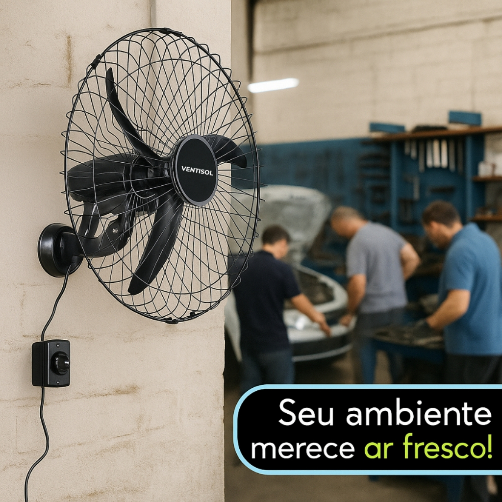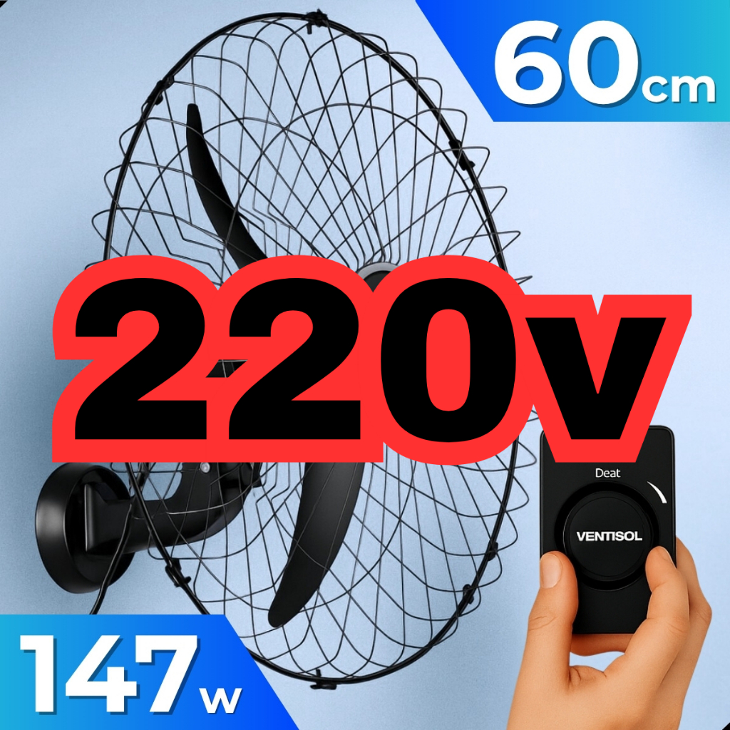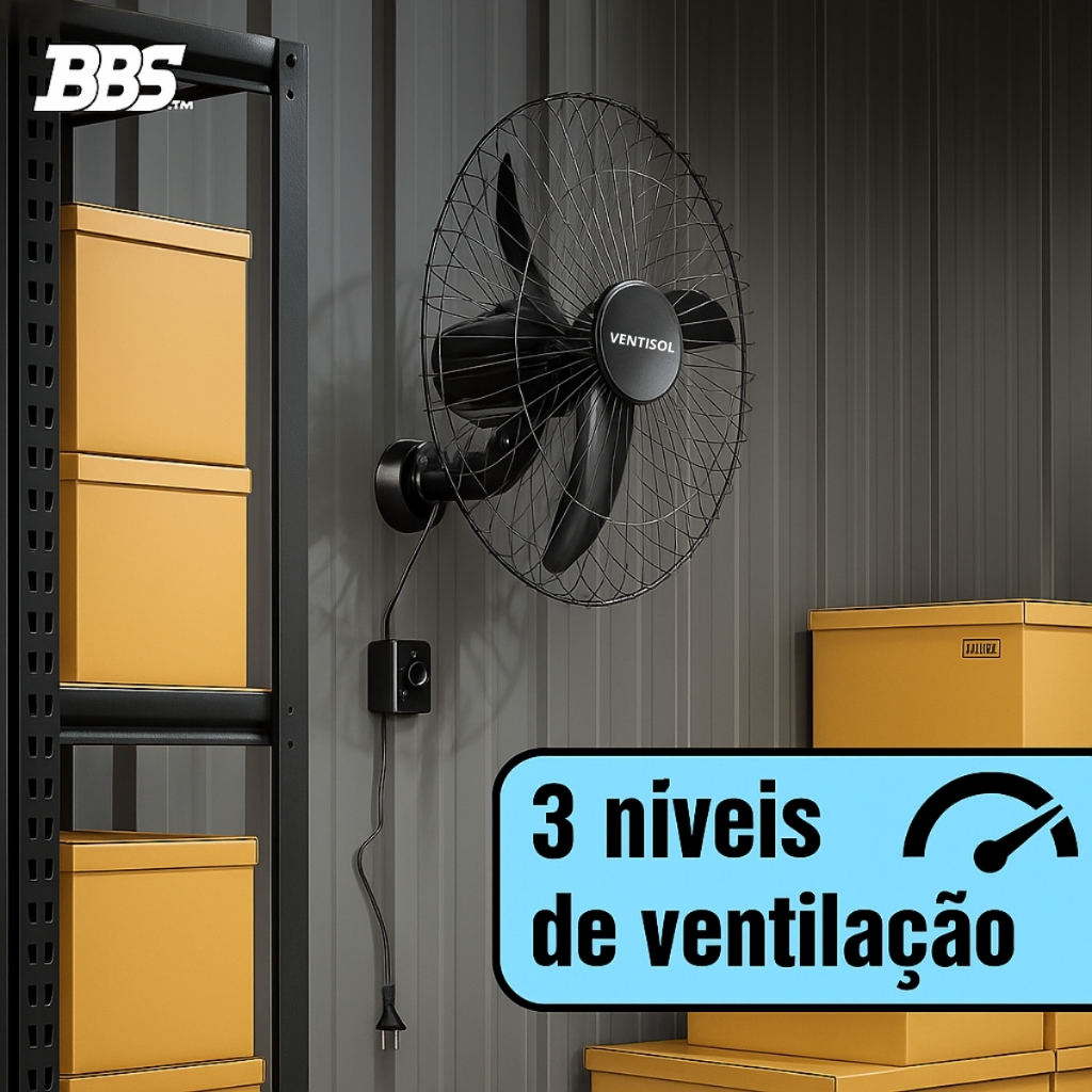 Ventilador Oscilante De Parede 3 Pás New 60cm Preto 147w Ventisol 110v 220v P/ Academia Igreja Loja