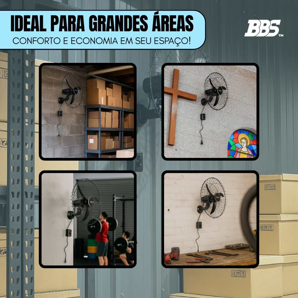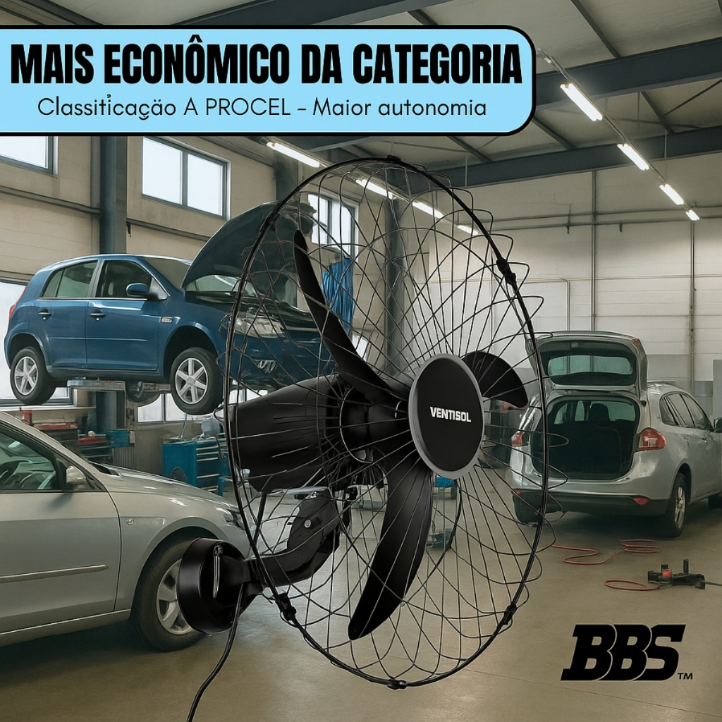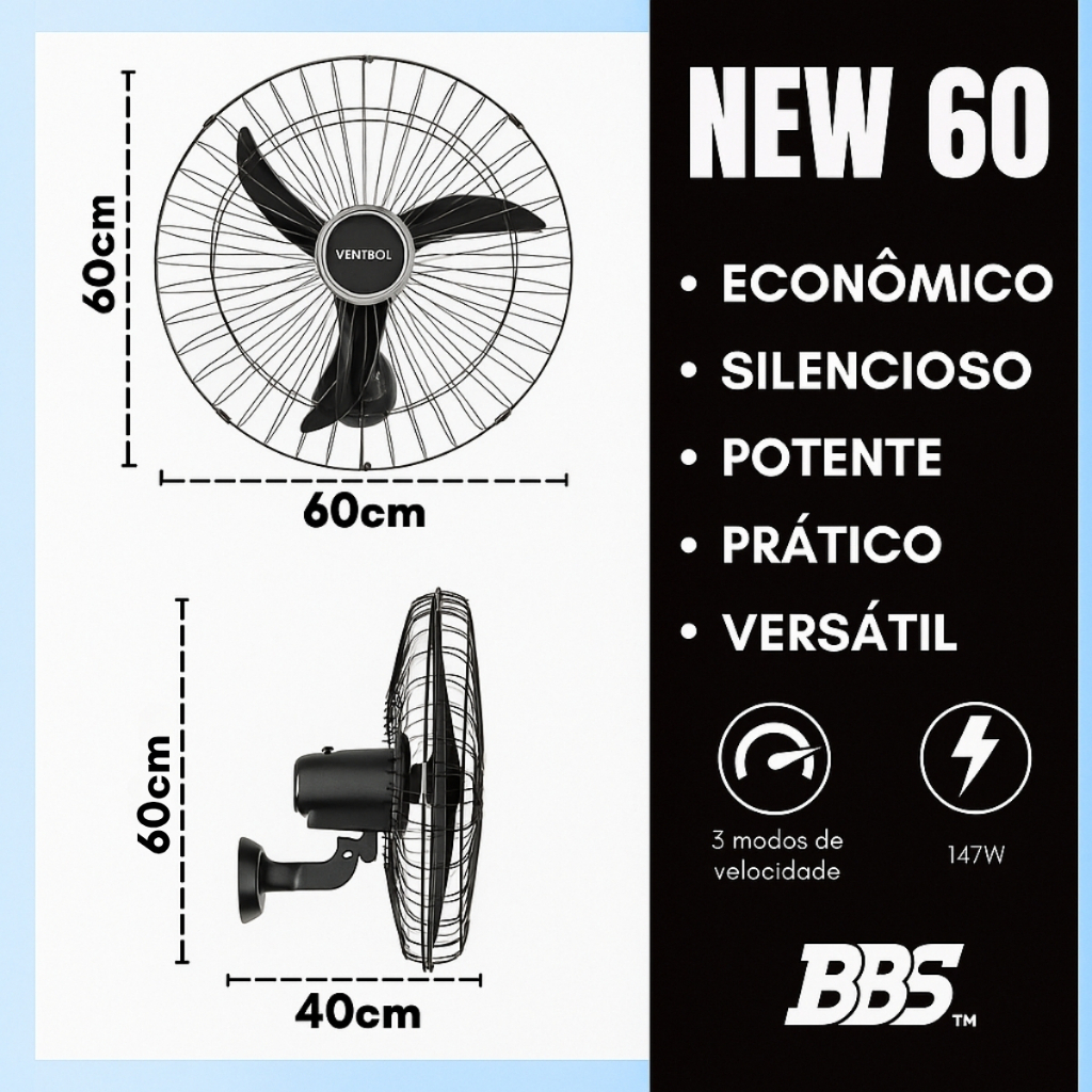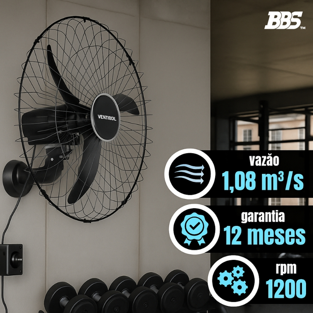 Ventilador Oscilante De Parede 3 Pás New 60cm Preto 147w Ventisol 110v 220v P/ Academia Igreja Loja