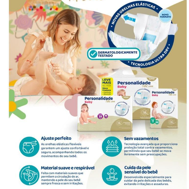 Fralda Descartável XXG Bebe Infantil Personalidade Baby Total Care Bag 42un