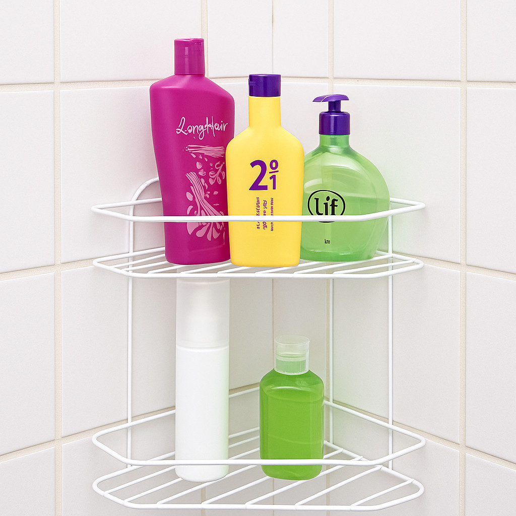 Cantoneira Dupla em Alumínio para Banheiro Box - Organizador Shampoo, Sabonete e Itens de Higiene.