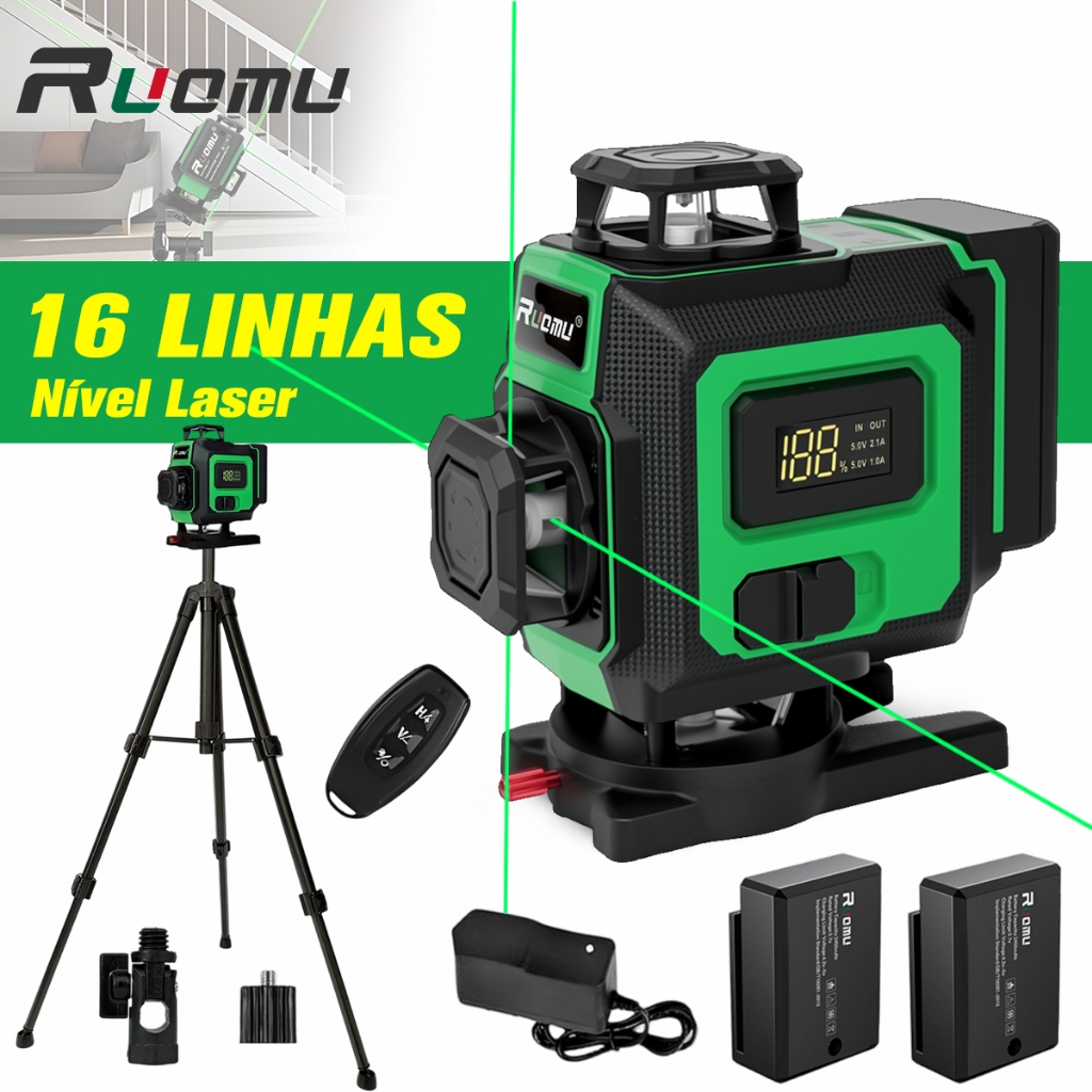 nivel a laser 2/16 linhas Profissional Verde Nível Laser PrecisãO 2 Baterias