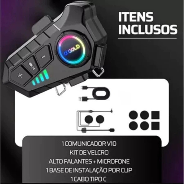 Comunicador Fone De Ouvido Bluetooth Sem Fio RGB À Prova D'água Para Capacete IPX6 A'gold