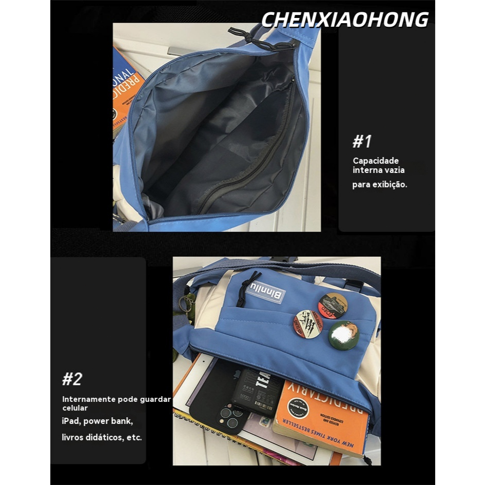 Bolsa transversal de ombro, grande capacidade, bolsa mensageiro casual, versátil.