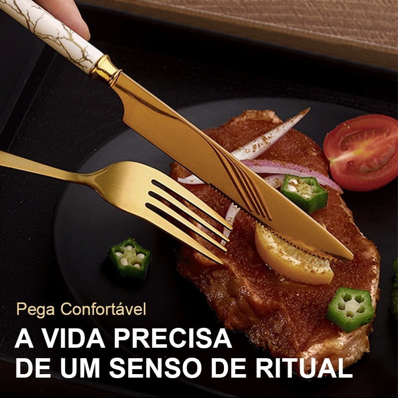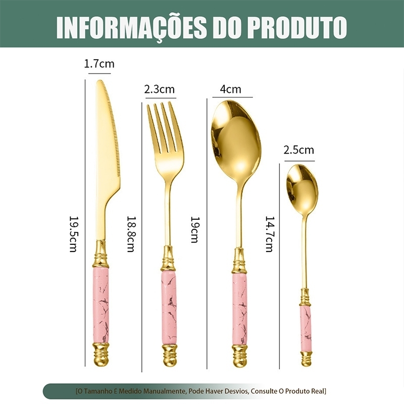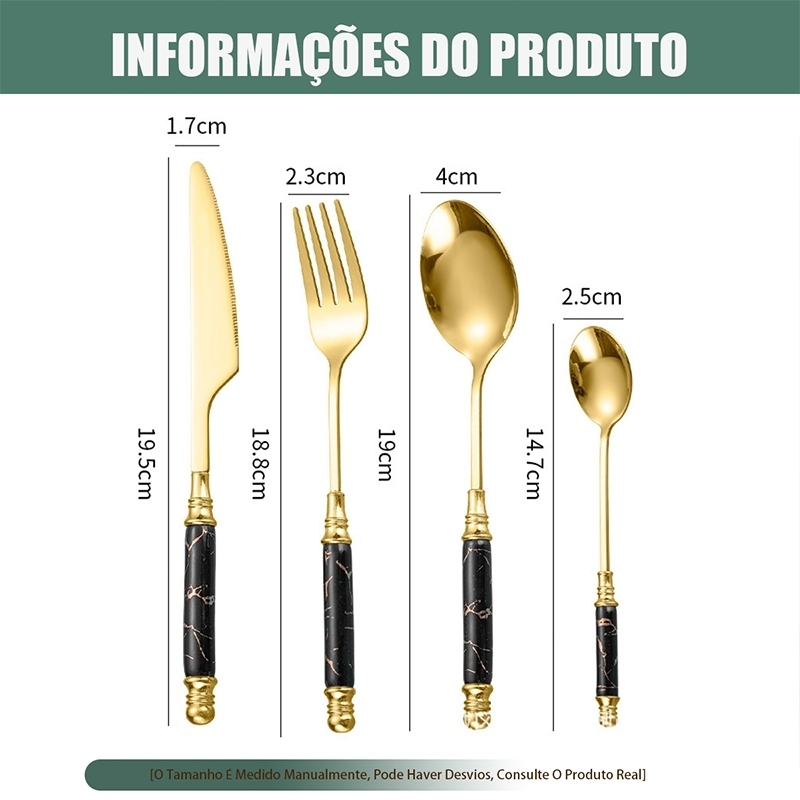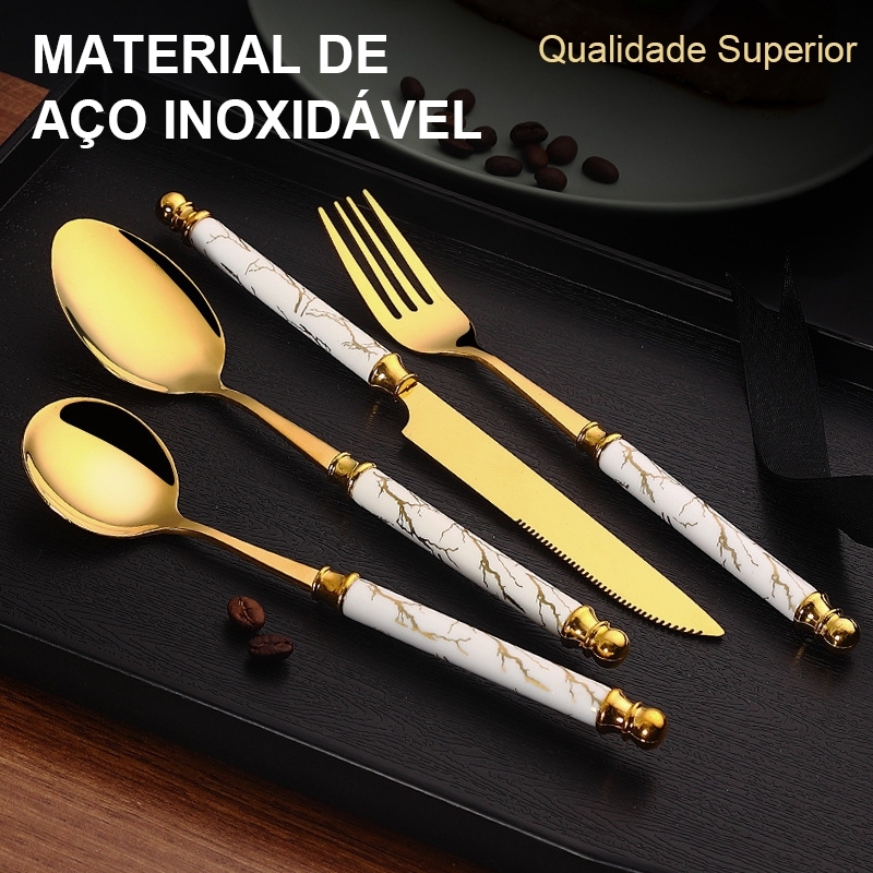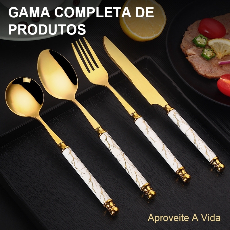 Kit 24 peças Talheres Colher Garfo Faca Luxo Linha Ouro para uso doméstico, banquetes e ocasiões festivas