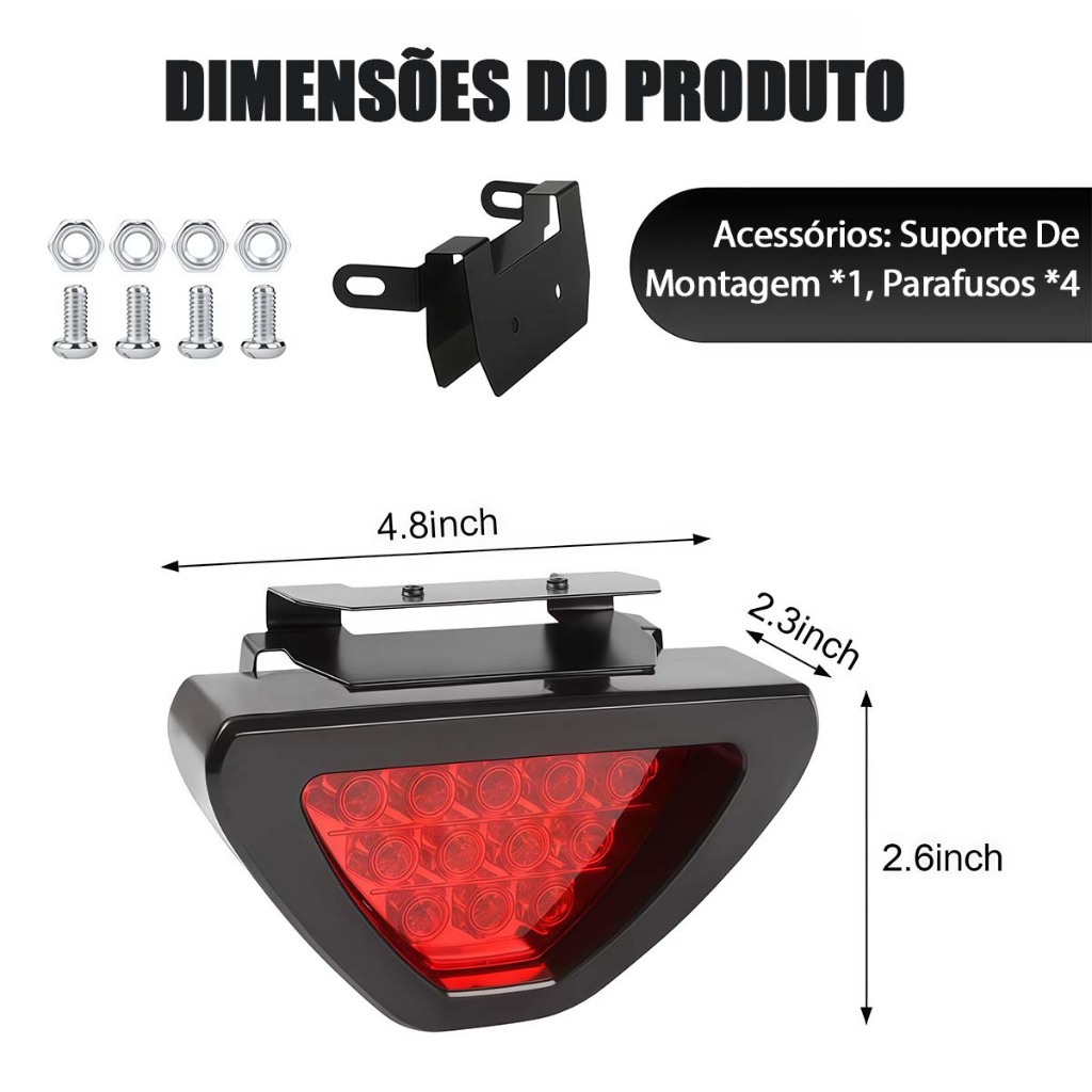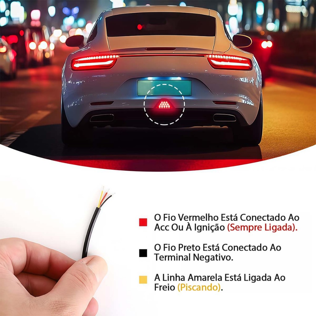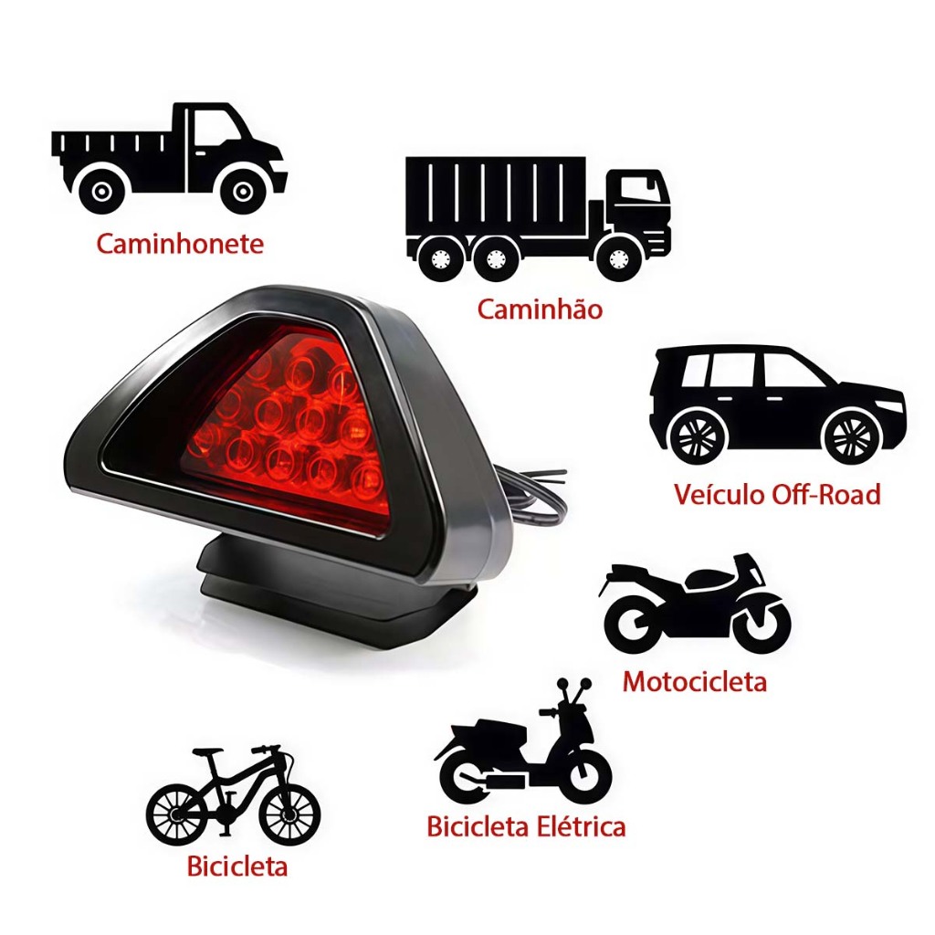 Luz Freio Universal Strobo Flash Anti Colisão,Brake Light Triangular modelo 12v