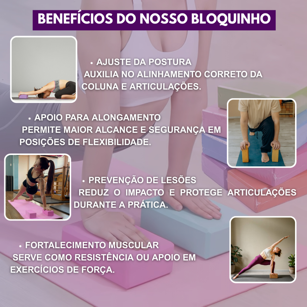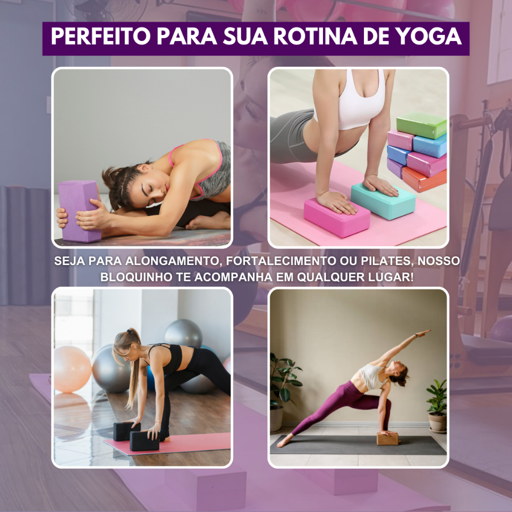 Bloco de Yoga Pilates EVA 20x10x7,5cm Apoio para Alongamento e Fisioterapia
