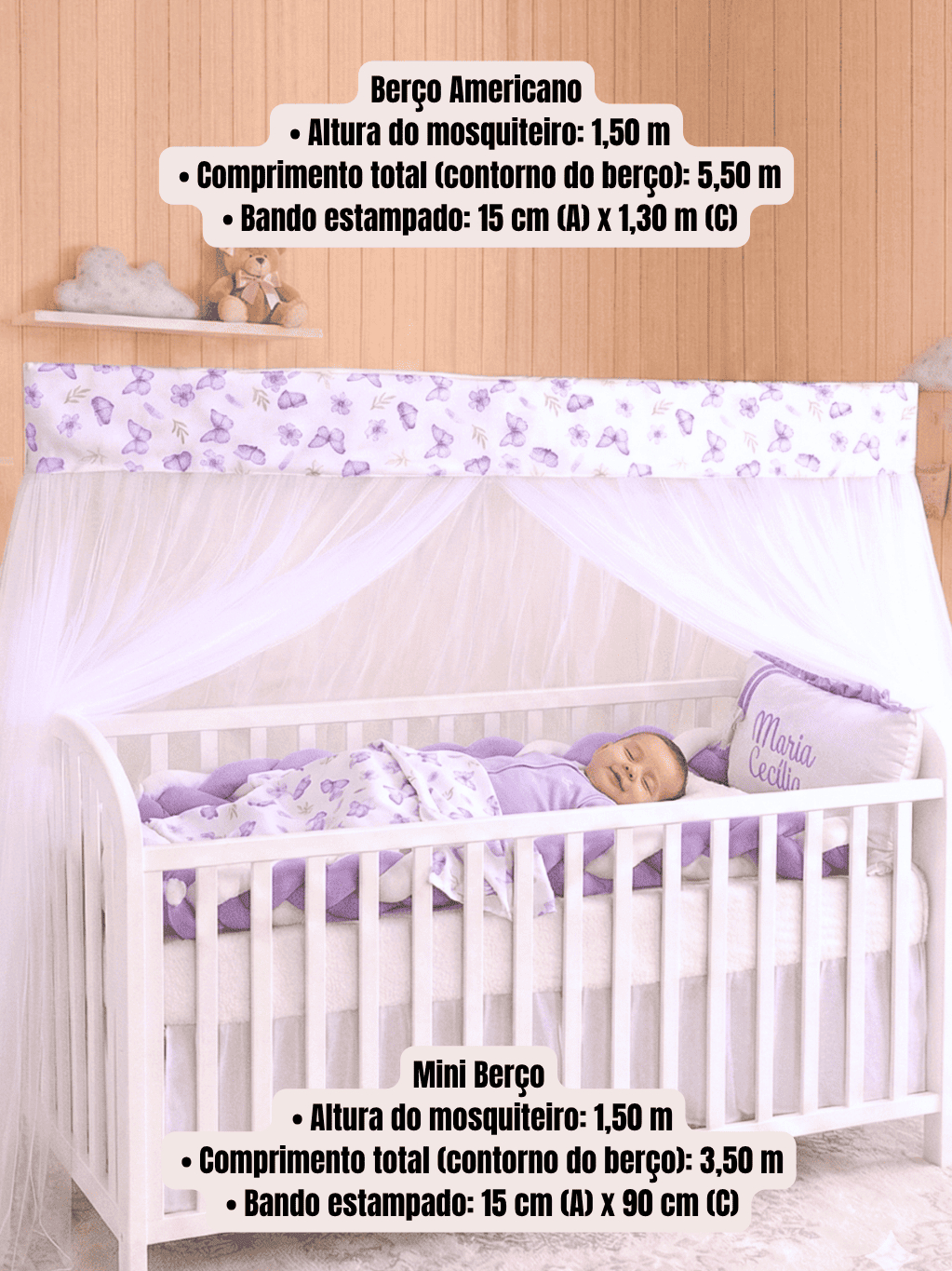 Mosquiteiro Tule Berço Americano E Mini Berço Bando Estampado Infantil Menino Menina