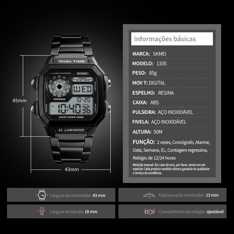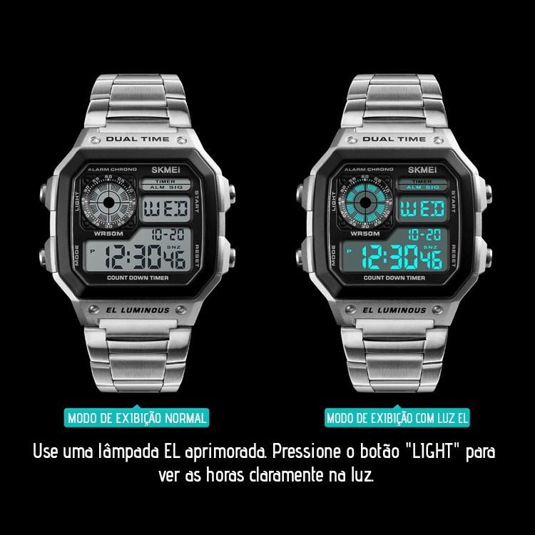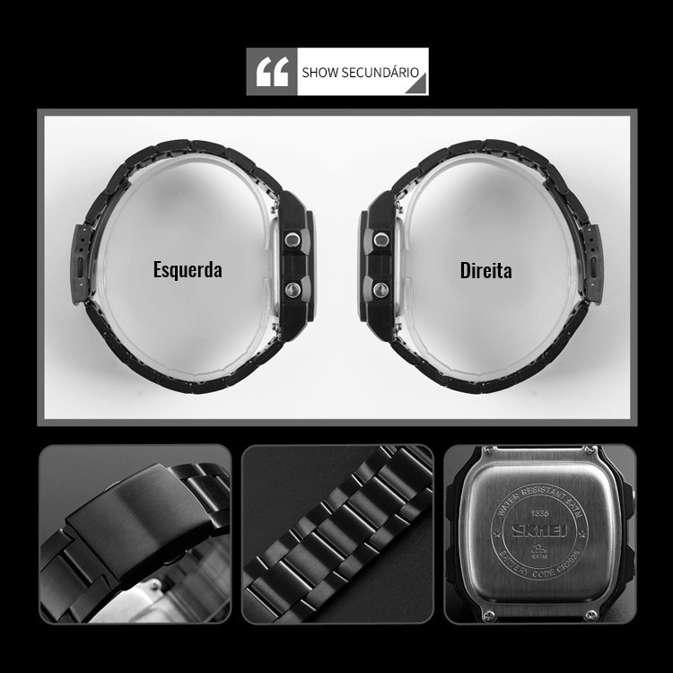 SKMEI 1335 Square Relógio digital Relógio retrô esportivo à prova d'água estudante Relógio masculino