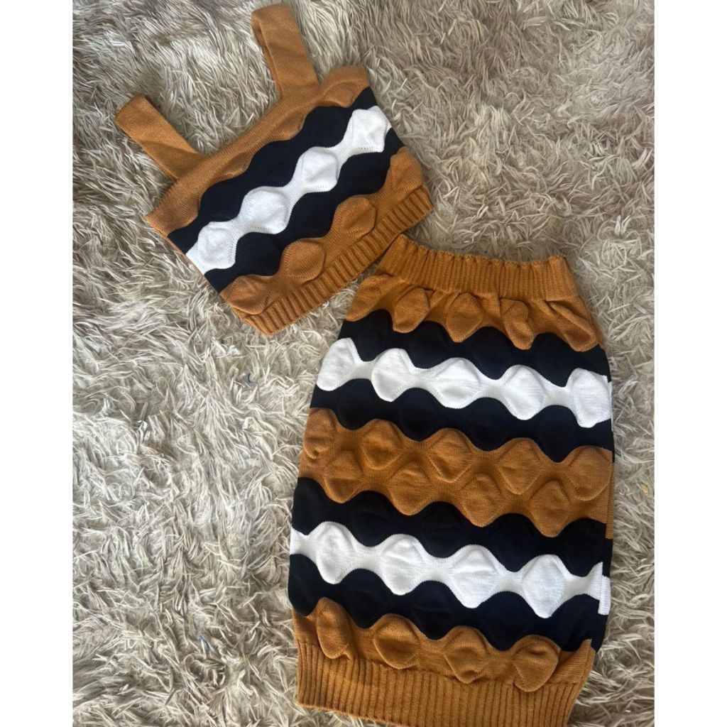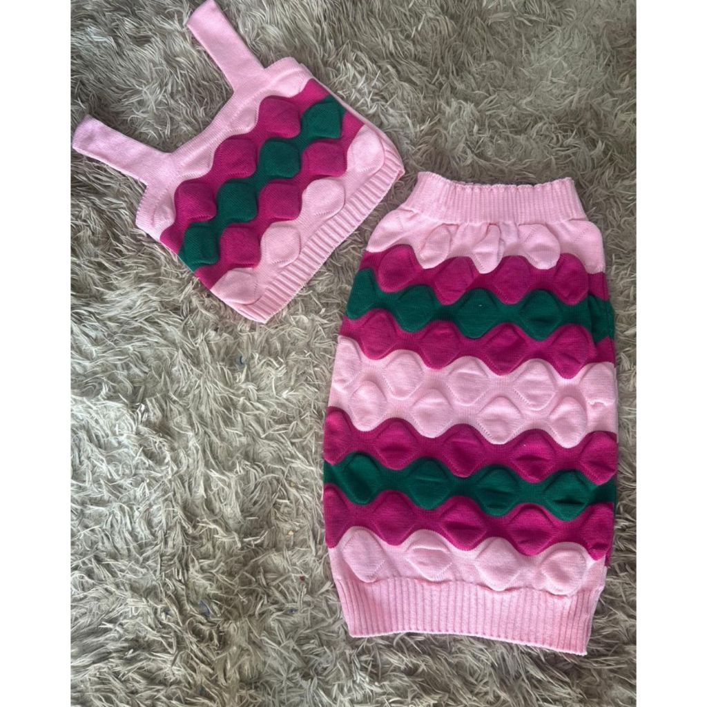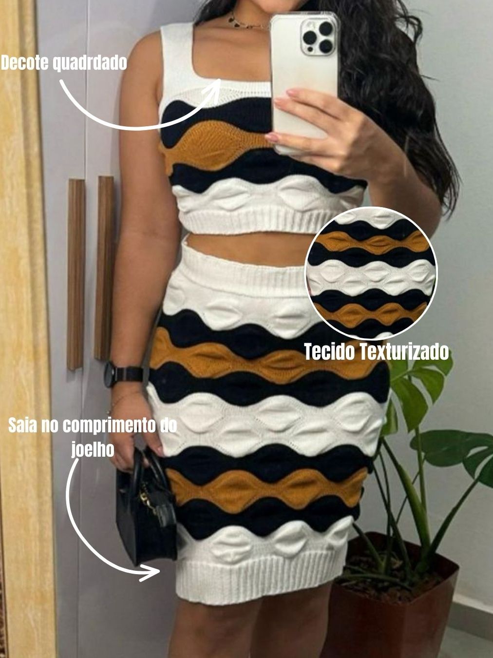 Conjunto Tricô Modal Feminino Canelado Texturizado Saia Midi Cropped Regata Tricot Moda Verão