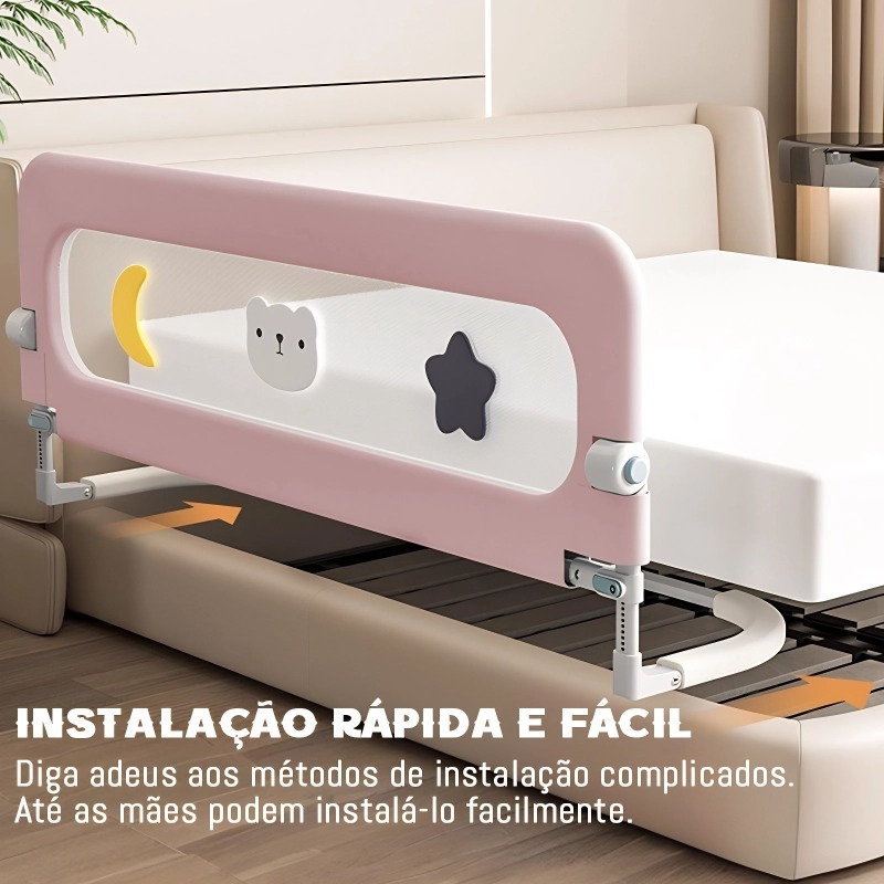Grade de Cama com Proteção Infantil com Tela de Segurança 1,2m 1,5m 1,8m 2m Rosa / Cinza