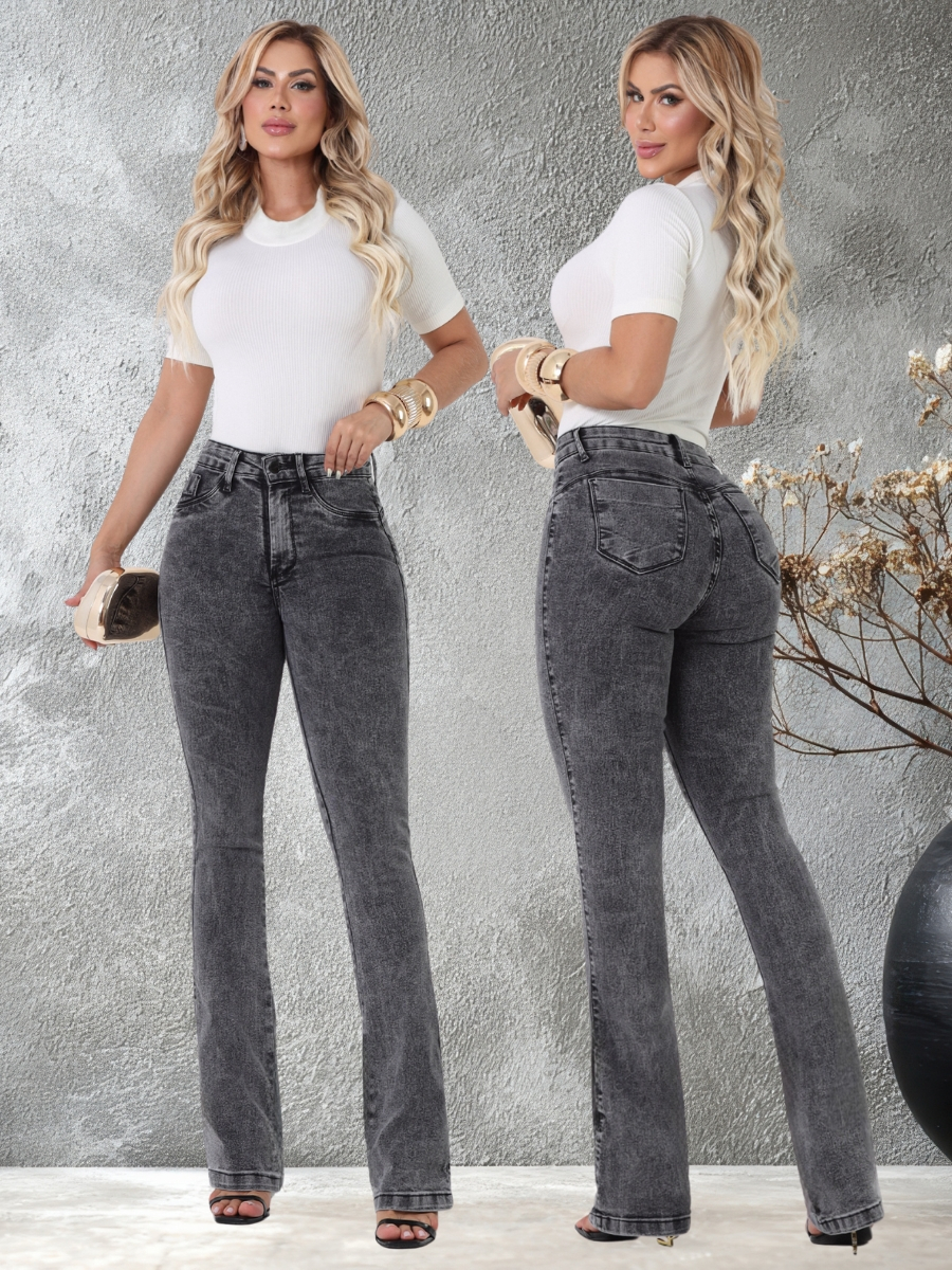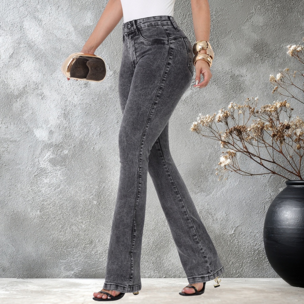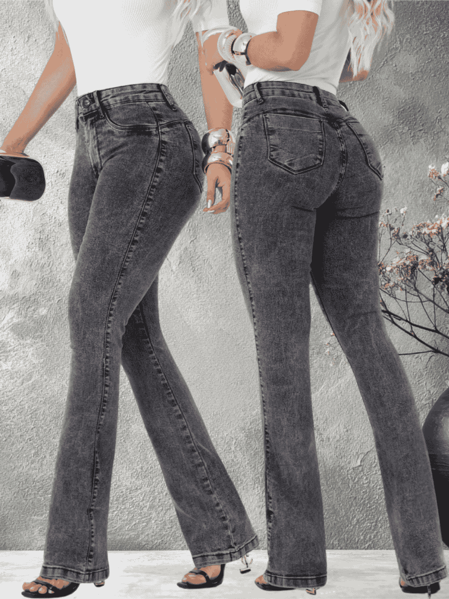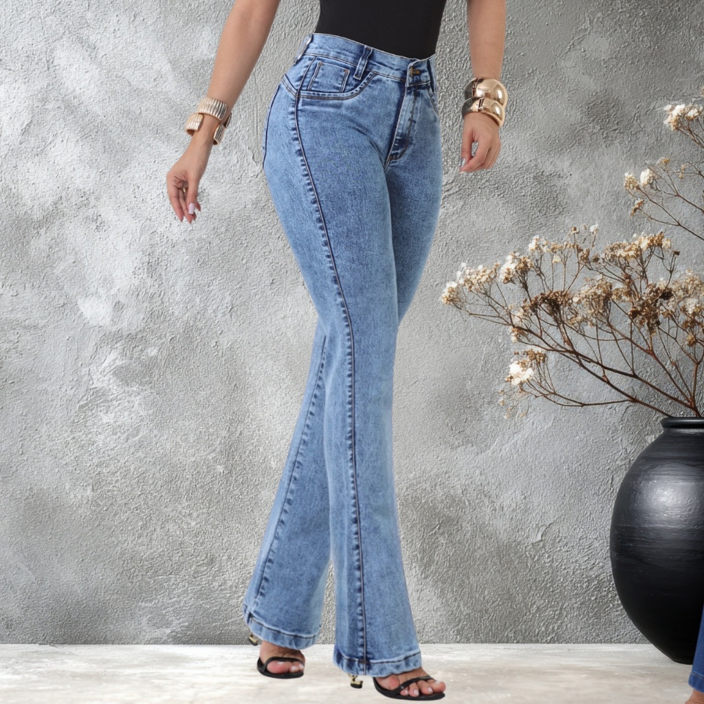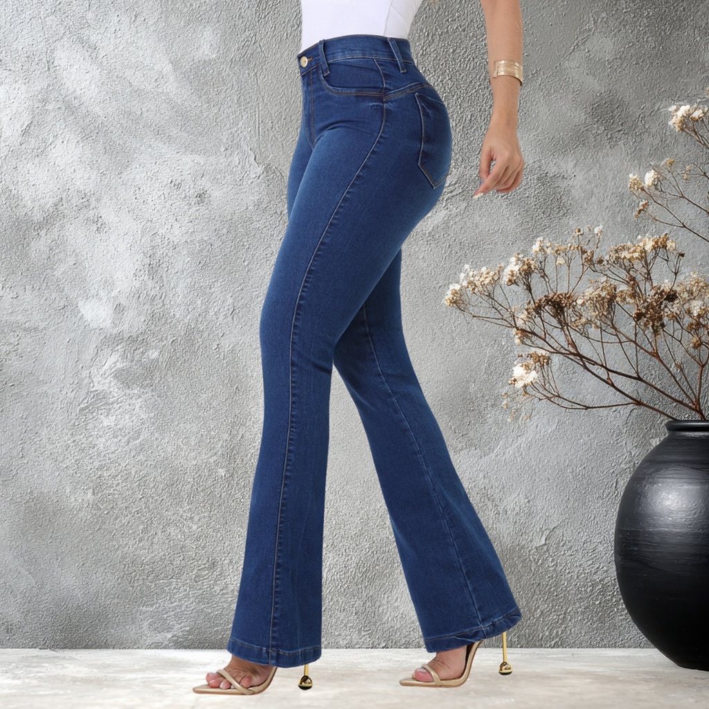 Calça Jeans Feminina Flare Cintura Alta Modeladora Lycra Premium Bootcut
